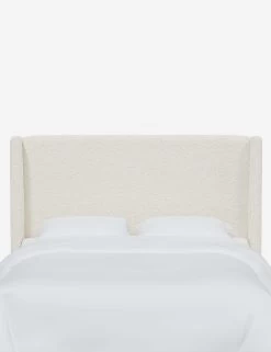 A stately bed frame made to fit a serene space. Its subtle winged headboard and trim lines offer crisp sophistication. Bring a bespoke touch to your bedroom with this upholstered bed that suits and elevates a tailored environment.