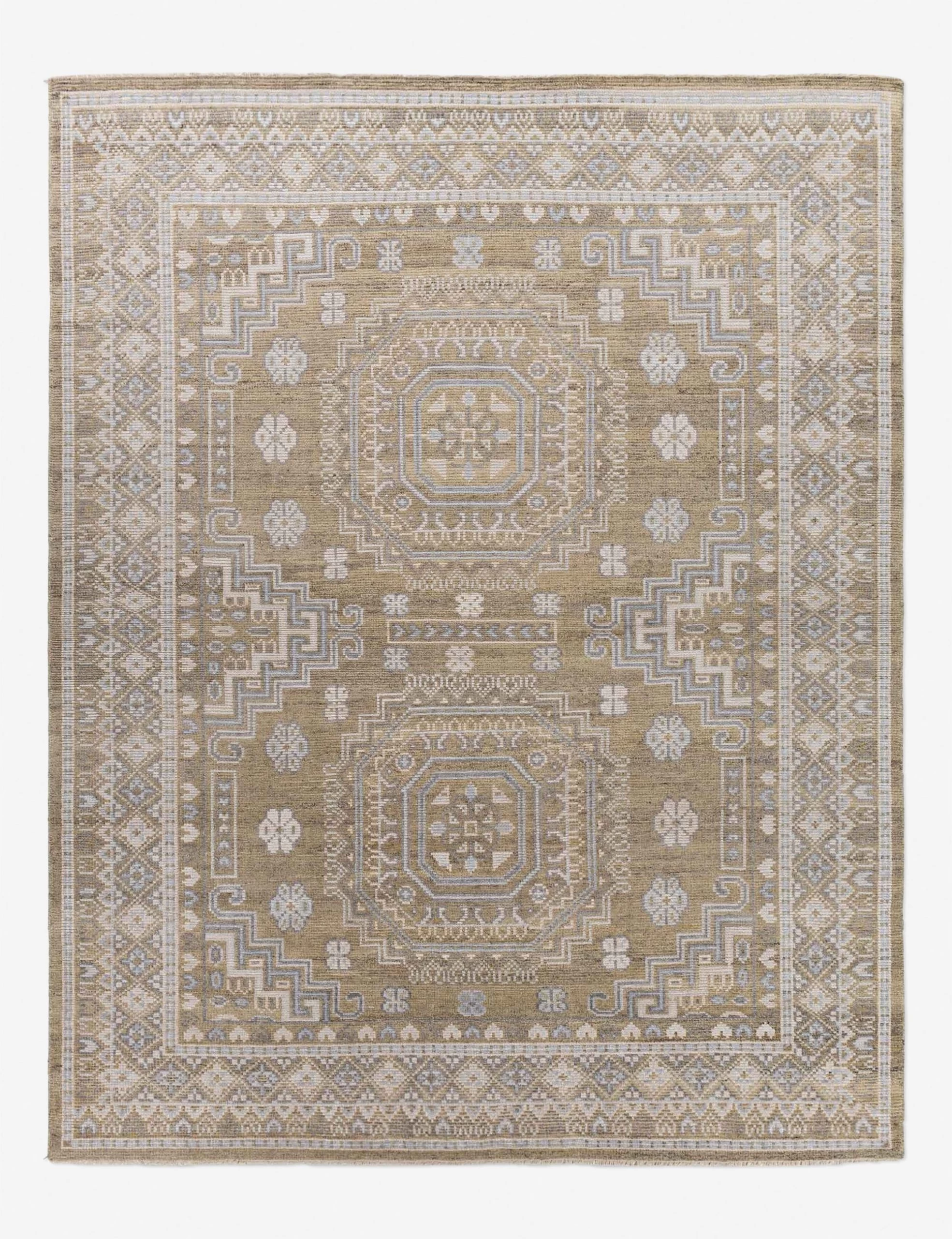 A golden wheat color palette serves as a stylish backdrop for the intricate, arabesque pattern of this area rug. Hand-knotted from a supersoft wool-viscose blend, this floor rug’s dynamic print suits bedrooms, living rooms, and dining areas alike.