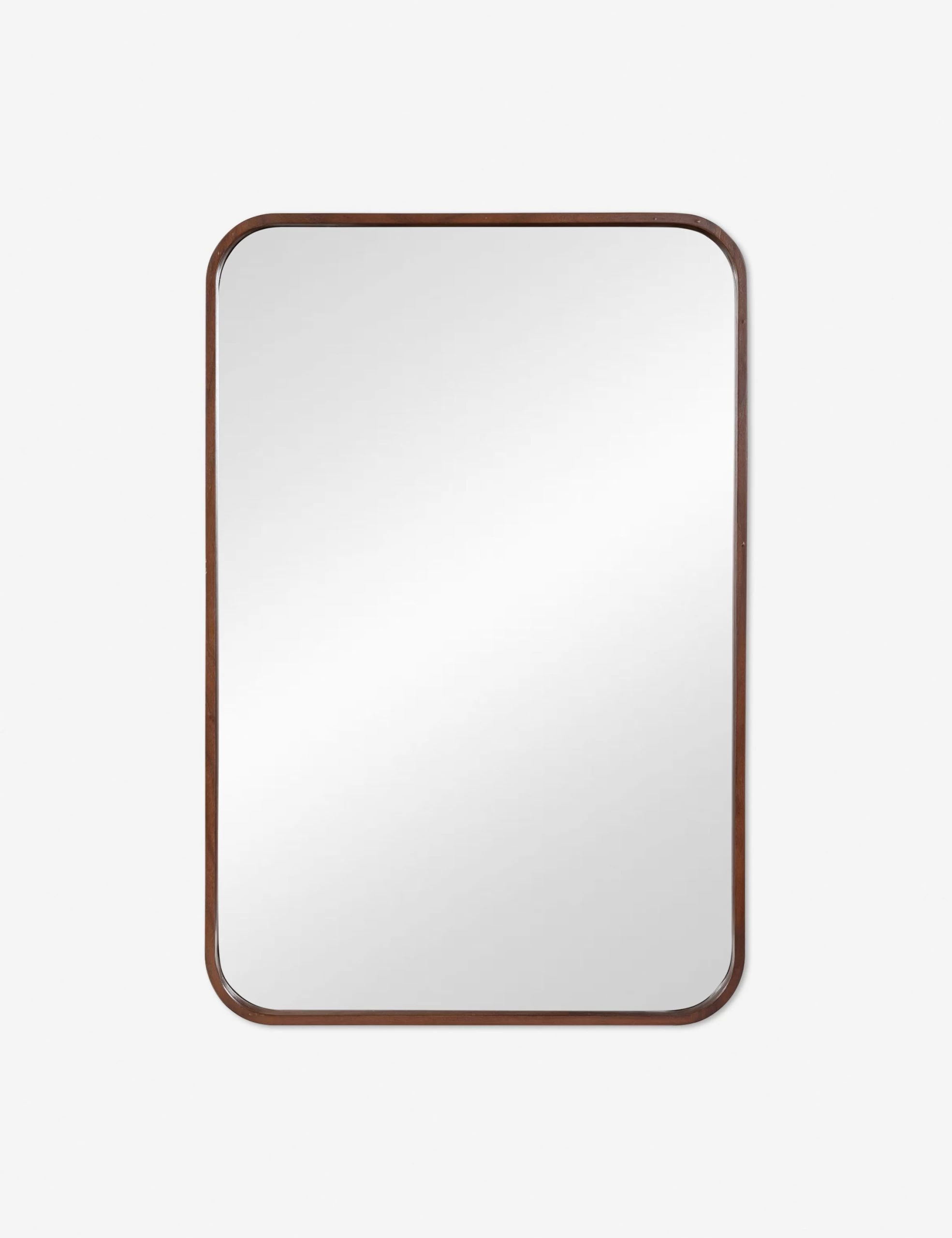 Infuse your space with a little mid-century style when you add this rectangular mirror to bare walls. A thick walnut frame, rounded corners, and deep inset edge add a retro look that pairs well with more contemporary elements!