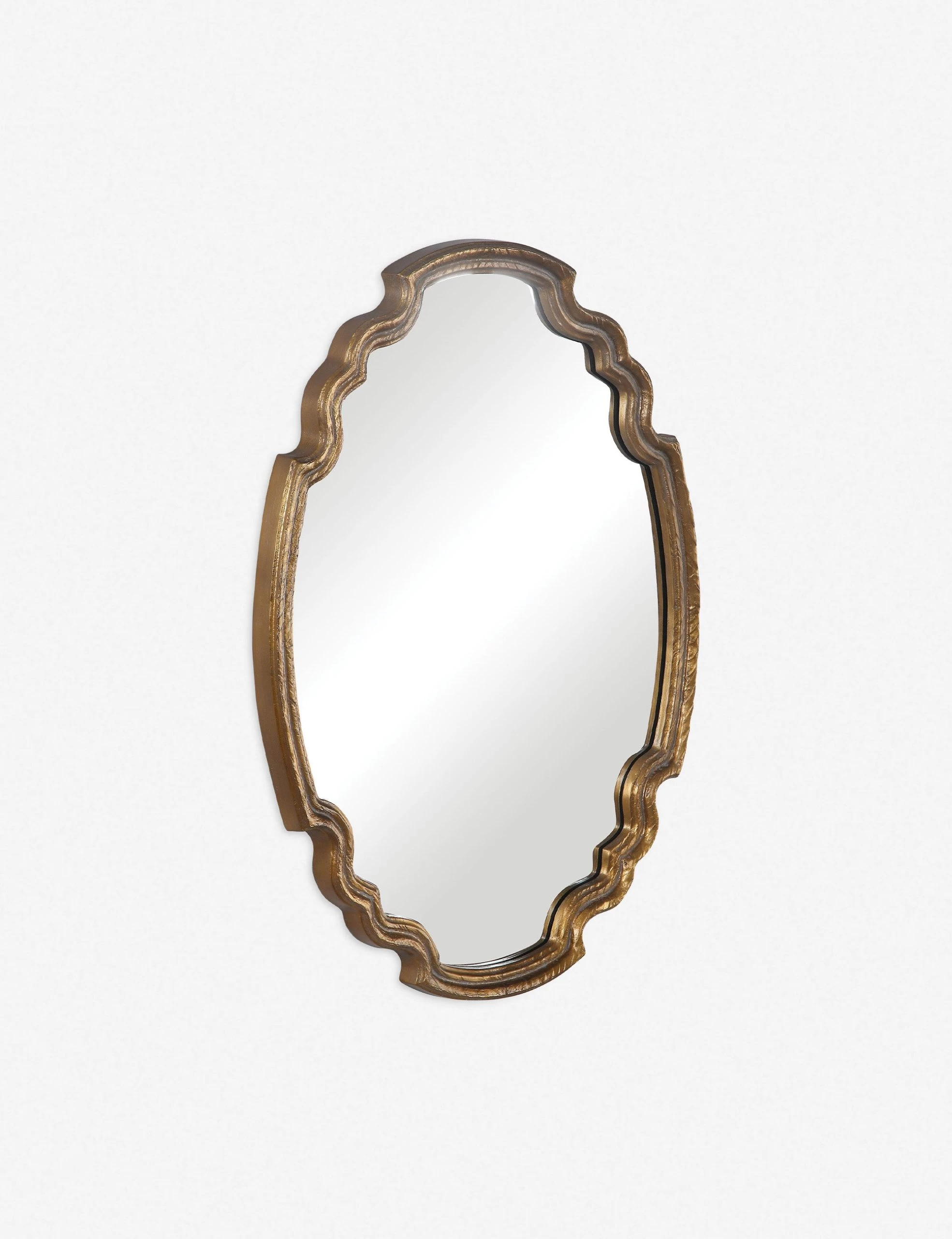 Refine your look with a touch of French glam. This decorative wall mirror features a dynamic shaped frame finished in gold leaf to offer antique appeal to any room. Try styling two of these wall mirrors for a classically-inspired double vanity.