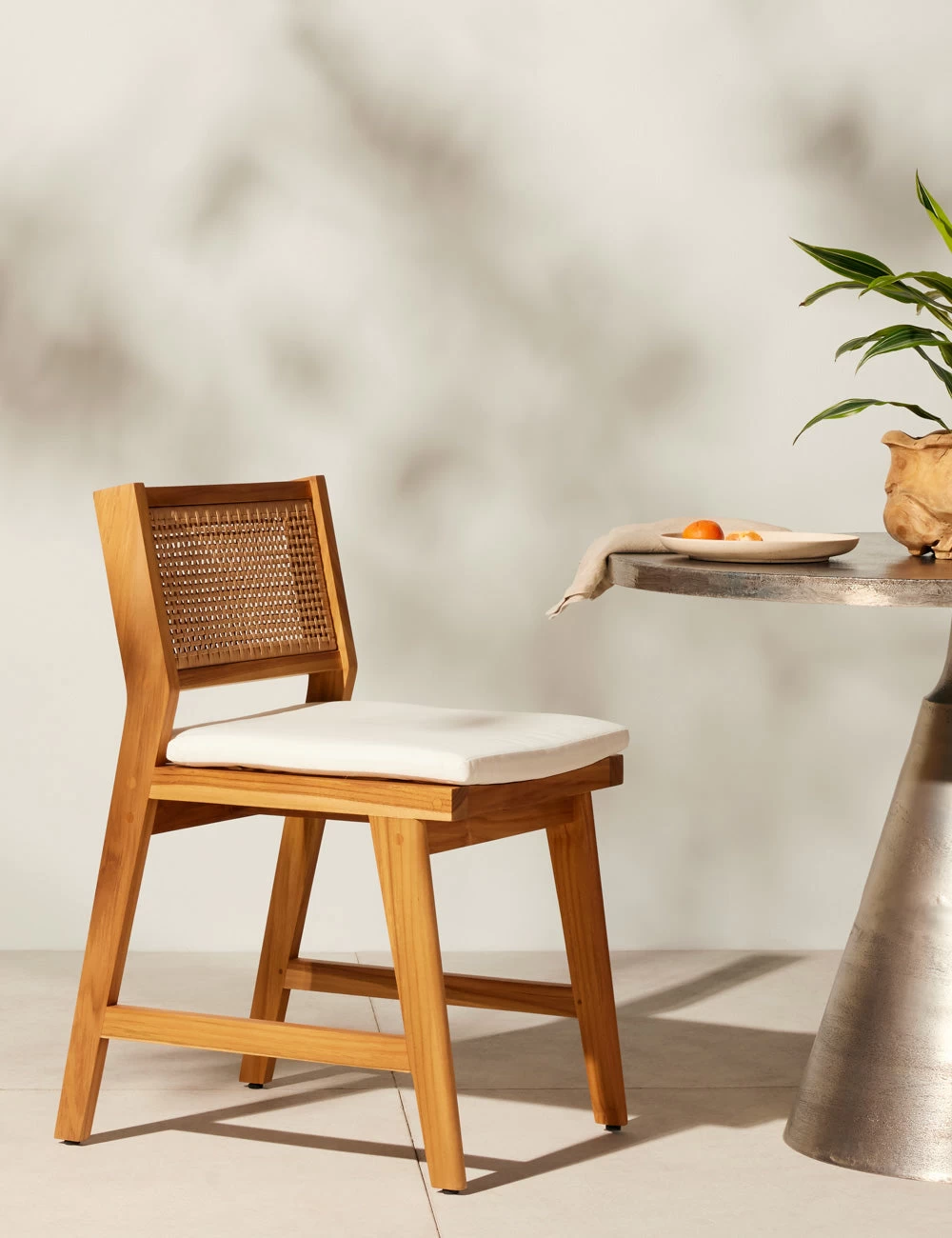 Inspire a space that feels elevated yet timelessly casual with this versatile indoor/outdoor collection. A teak frame cut with modern lines, all-weather wicker paneling, and a performance upholstered seat offers the Anson dining chair a breezy charm. We love this dining seat for a transitional breakfast nook or alfresco patio set.