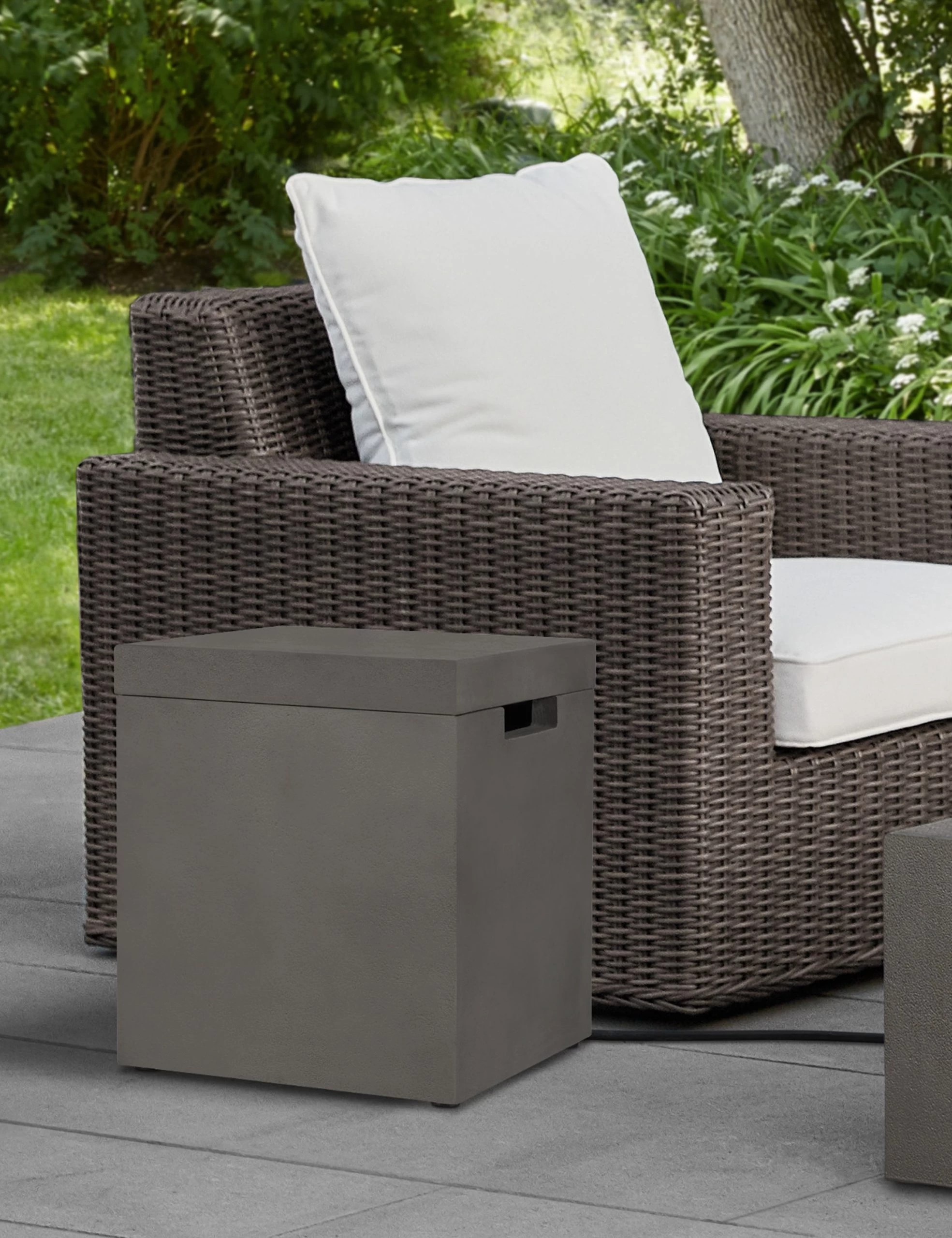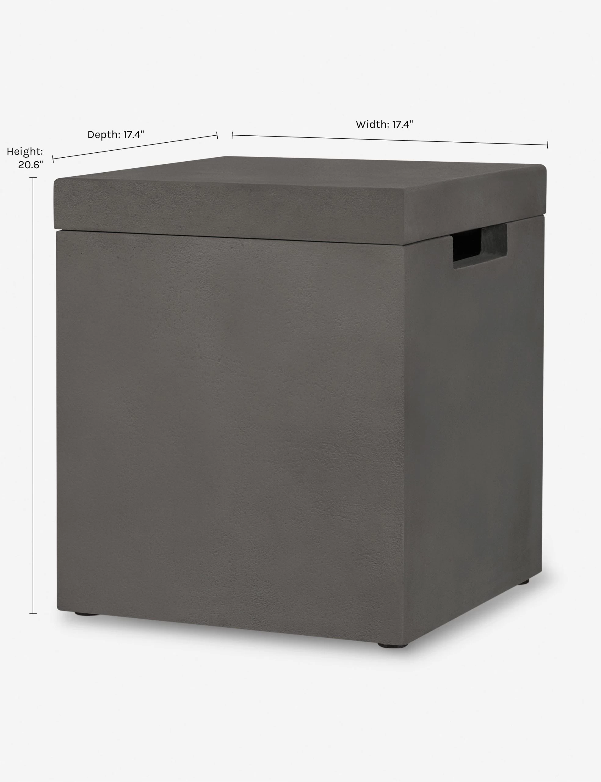 Complete your patio look with a concrete cover made to match your fire table or bowl. This concrete cover discretely conceals a 20-pound propane tank and doubles in transforming your fire pit into an accent table, offering style and functionality to your outdoor lounge.