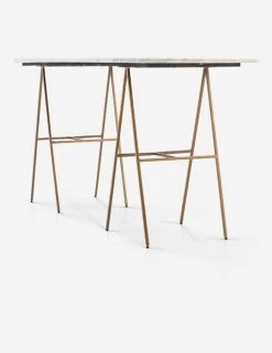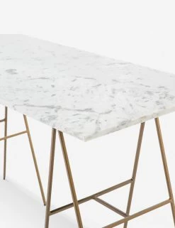 With two slim A-frame legs, this marble desk offers space for work while maintaining an open, airy feel. White marble provides on-trend elegance, while the brass adds a sense of boldness.