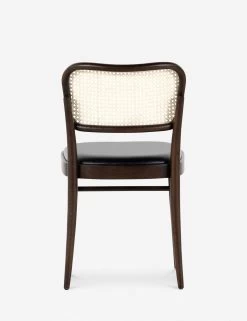 Polished touches underpin the antique-inspired air of this dining chair. The light cane paneling provides a striking visual contrast with the smooth black seat and dark-finished solid ash frame. Style as a set of dining room chairs for a mid-century-inspired look or a dramatic accent in a transitional space or study.