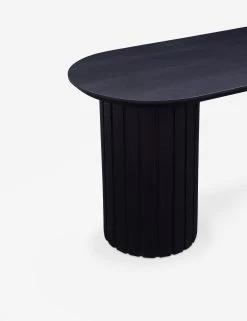 Create an elegant place to land with this solid wood dining bench. An oval seat sits atop two pillar legs with subtle ribbing accentuating its elemental form. We love the transitional appeal of this modern bench, whether styled in your dining room or entryway hall.