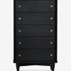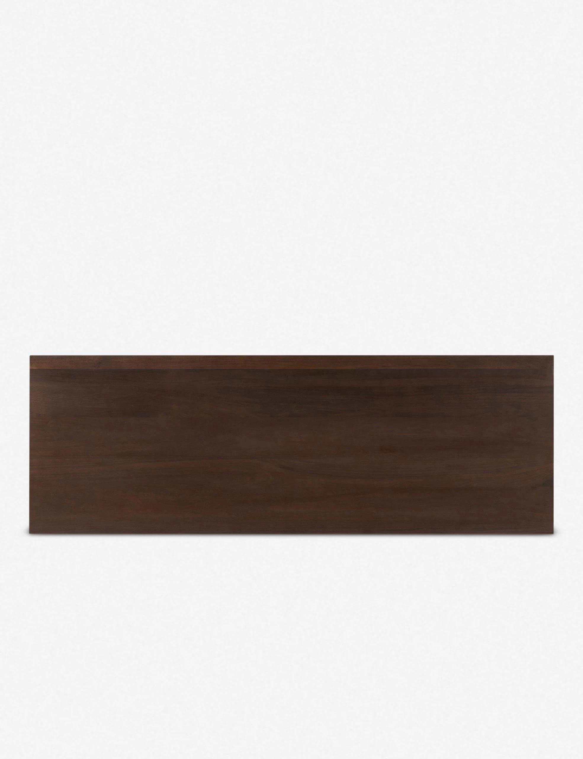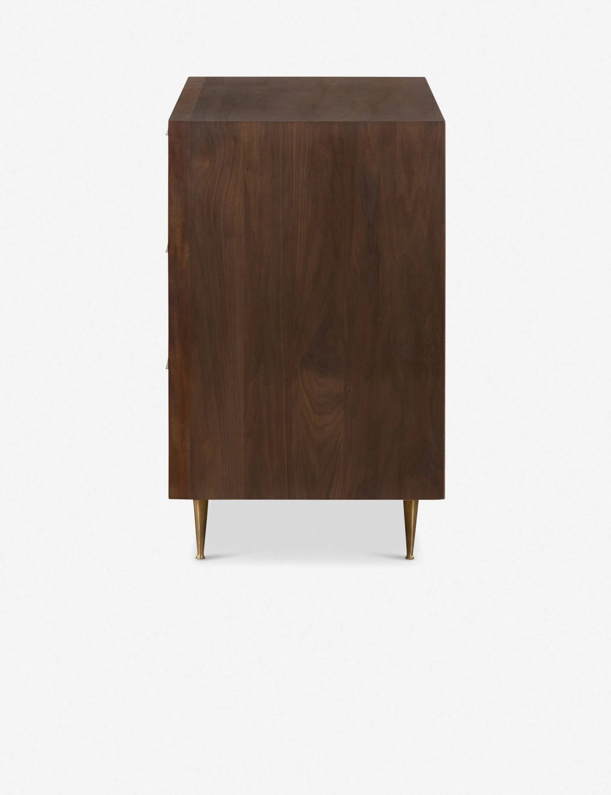 Ground your bedroom or morning space with the understated beauty of this spacious six-drawer dresser. A clean, streamlined design with modern undertones is clad in a walnut veneer with a dark chocolate finish, then fitted with brass-polished drawer pulls and legs for a lustrous accent.