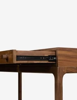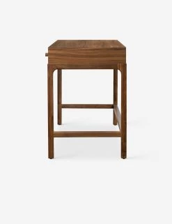 Inspired by campaign furniture of the 1800s—designed to be lightweight, durable, and easily portable for travel—the Cameron desk offers that same timeless elegance with a modern design. The desk’s pared-down frame is perfect for a functional yet elevated workspace that blends the old with the new. A warm finish enriches the piece, showcasing the natural walnut grain.