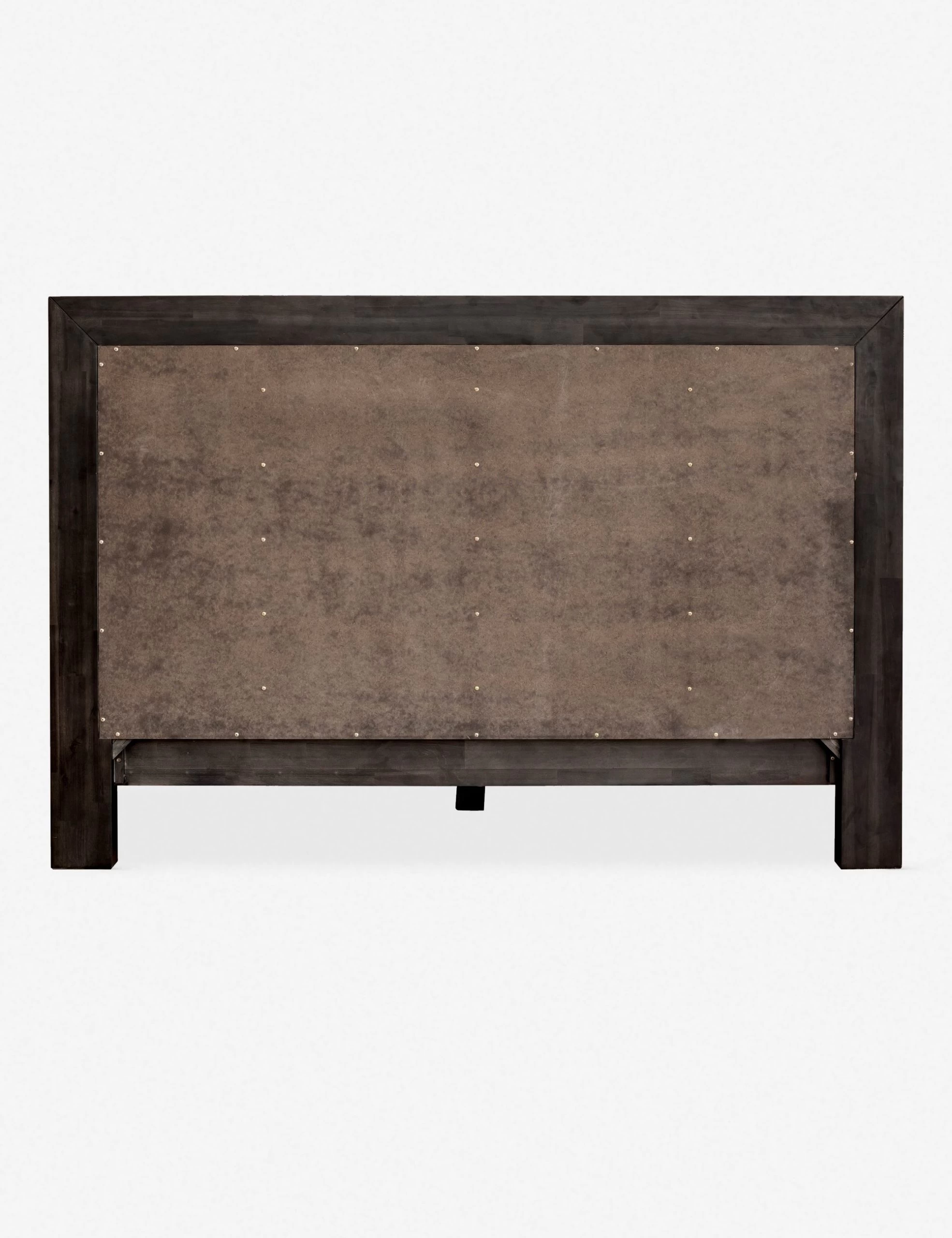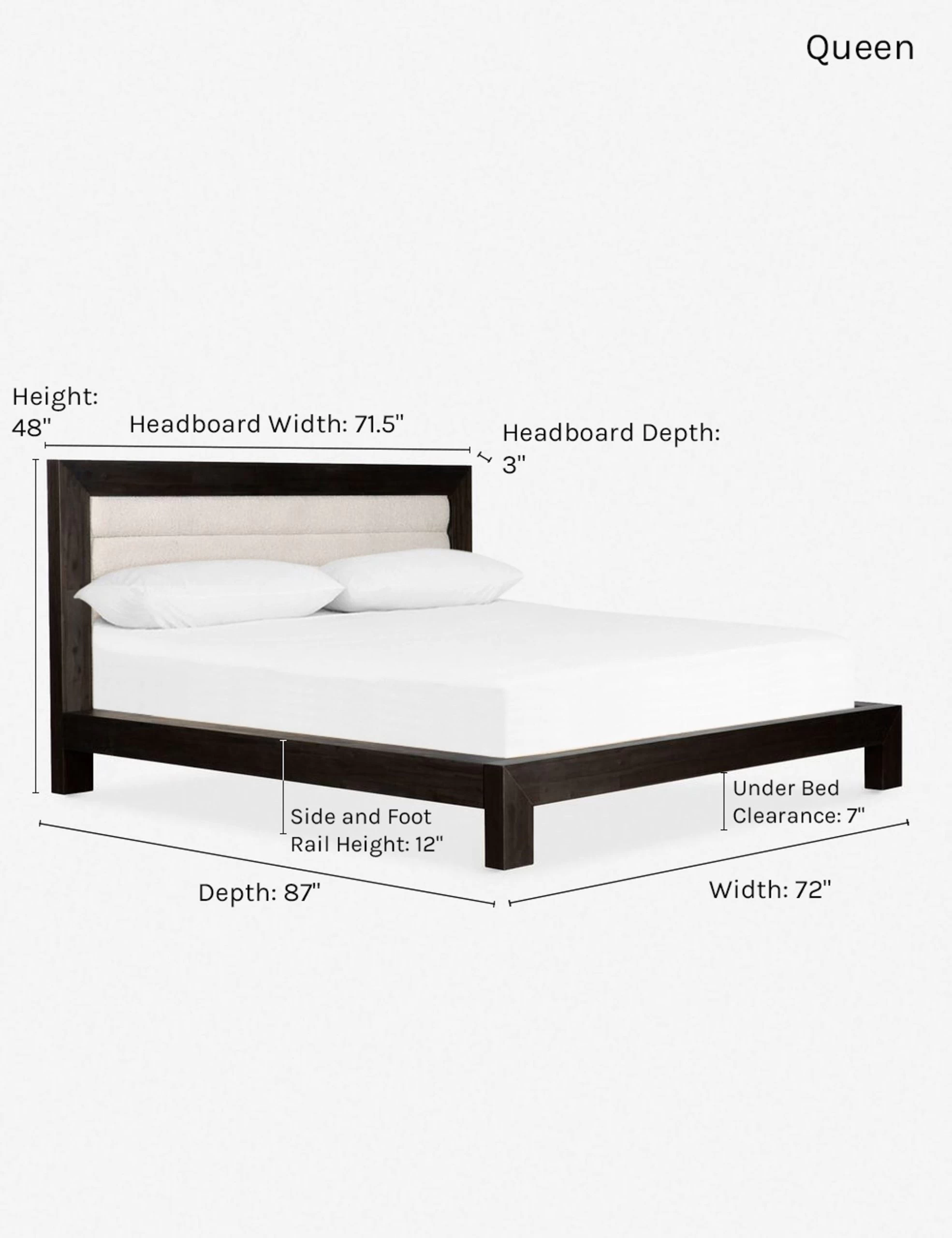 The sleek, black frame on this modern platform bed frame makes for a timeless look that’s both clean and versatile. We love the added dimension of the channeled headboard, perfect for late-night reading in bed.