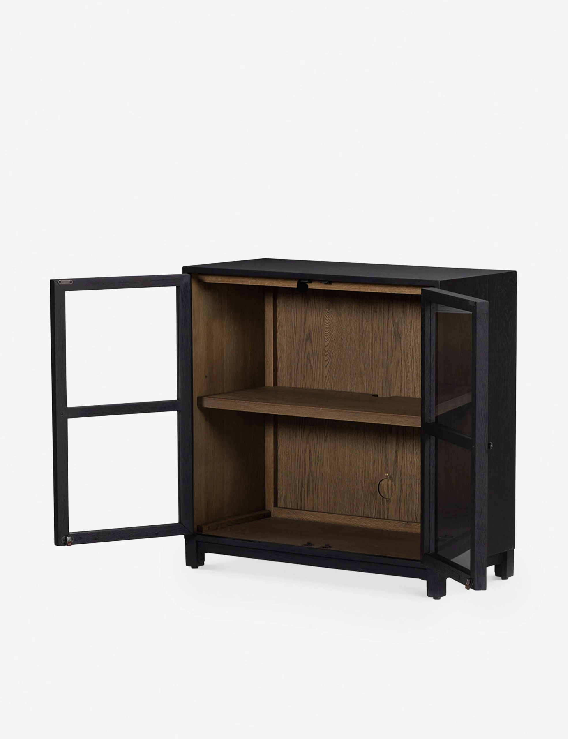 A transitional cabinet with paned glass doors and an oak frame. This small curio cabinet offers versatile storage plus an extra surface for decor. We love how the spacious shelving and natural wood grain put your favorite pieces on full display.