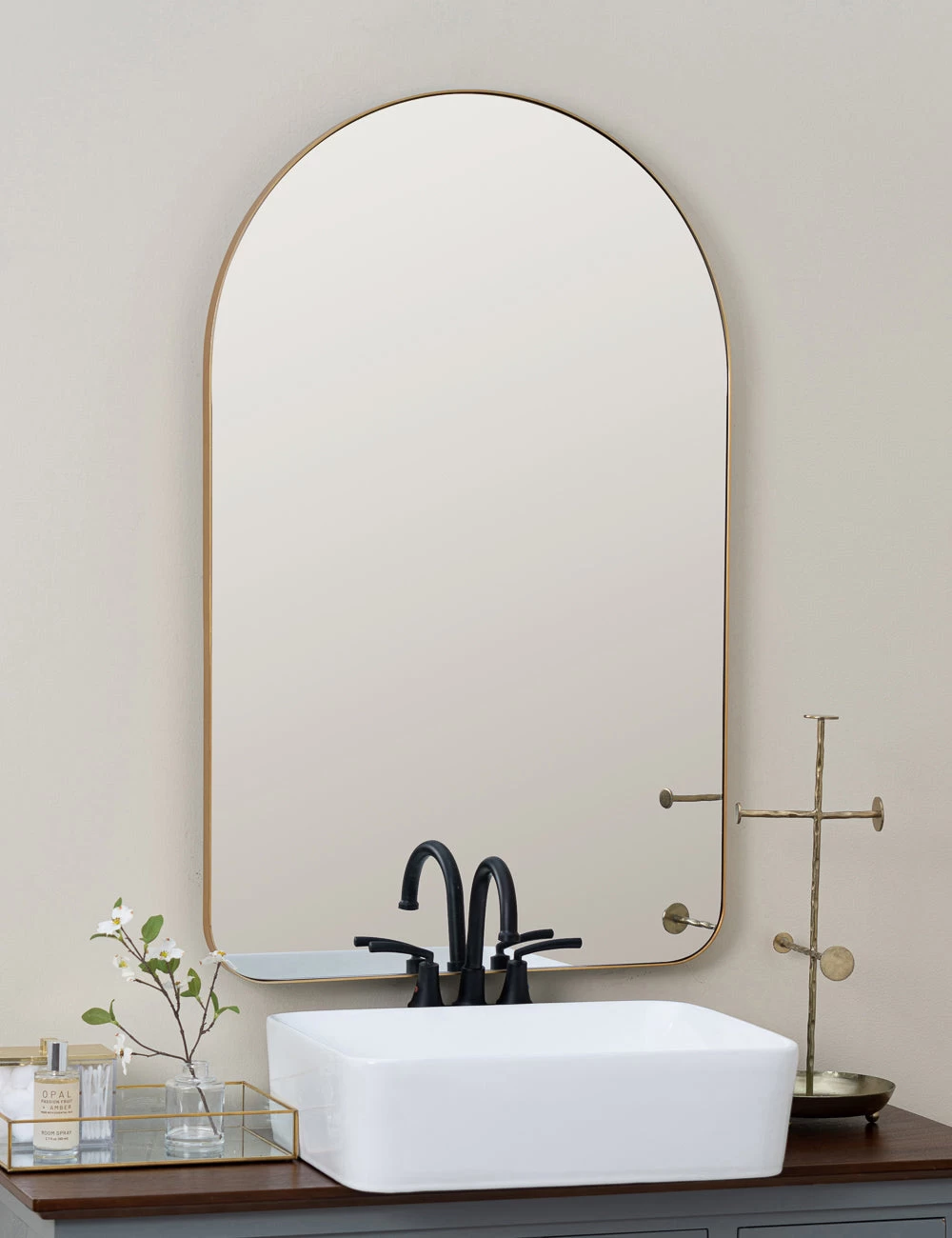 Sleek and timeless, this arched mirror features a thin frame and rounded corners for a versatile look. Style this wall mirror in a hall or entryway for architectural appeal, or hang it above a console or mantel for added depth and polish.