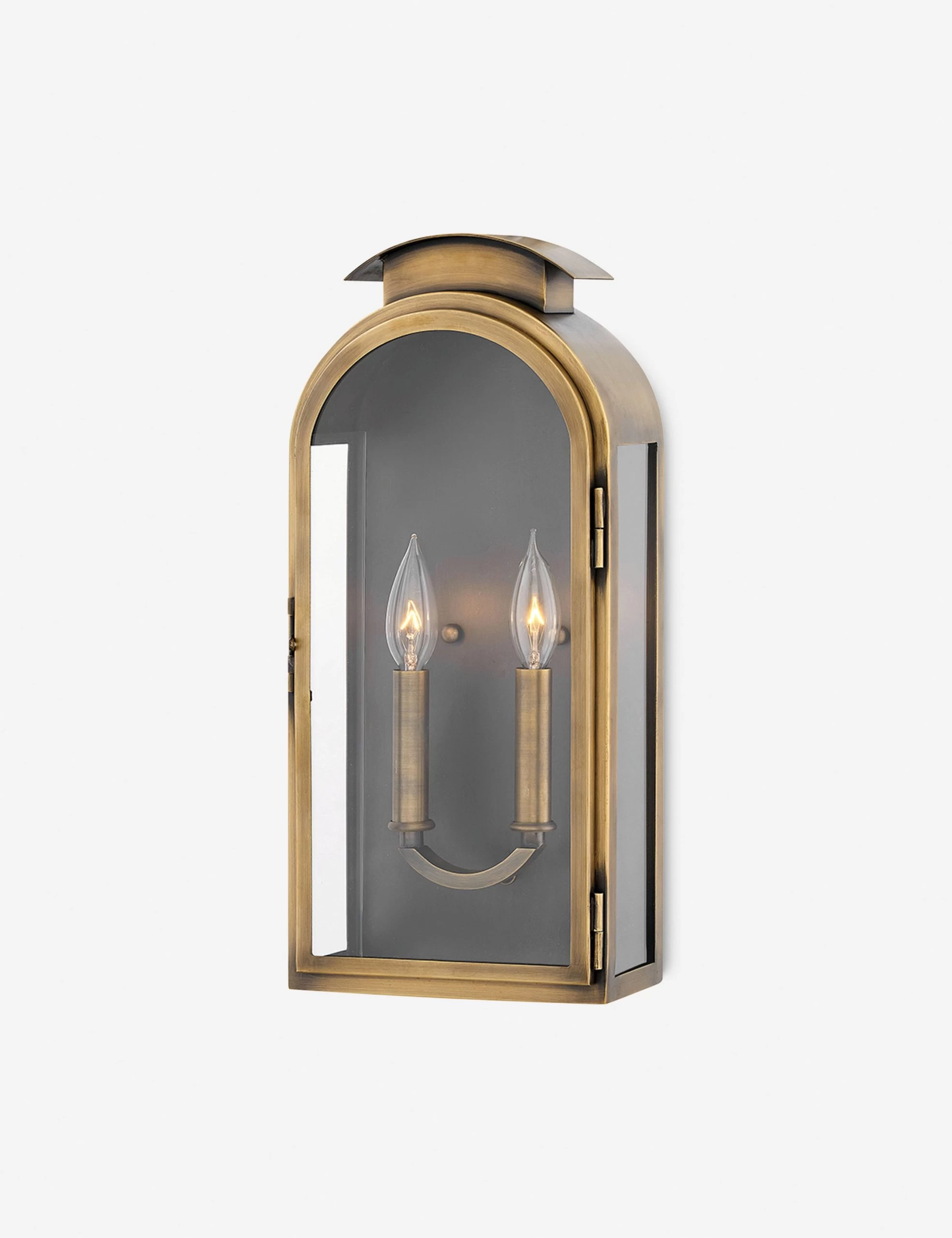 Made for any setting with a timeless charm, the Culpepper sconce is an instant classic. This sconce light’s arched frame features glass paneling in a chic take on Americana lighting designs. We love the subtle luster of the antique brass finish, whether warming a transitional living space or lighting a patio lounge.