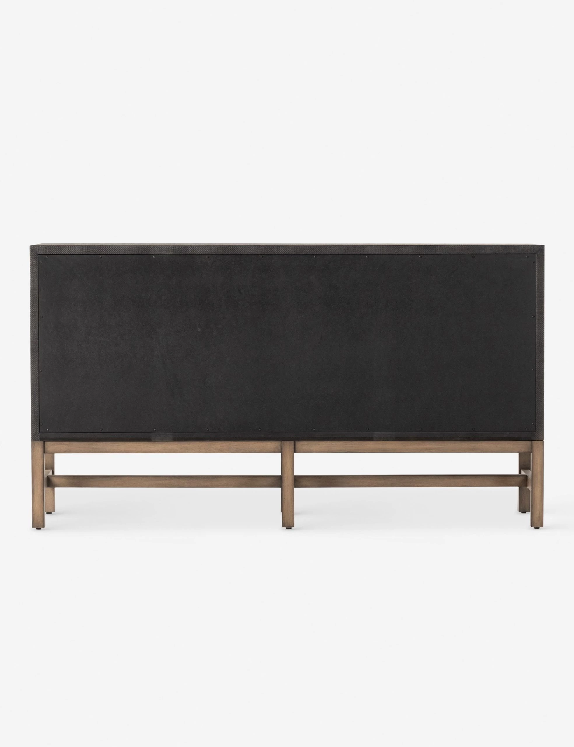 This woven raffia dresser offers textural impact with a clean, linear silhouette. The two-tone finish of the black raffia against the warm mahogany base adds impact for a modern look and feel. With six drawers atop the open base, this dresser provides plenty of storage while keeping your bedroom edit airy and light.