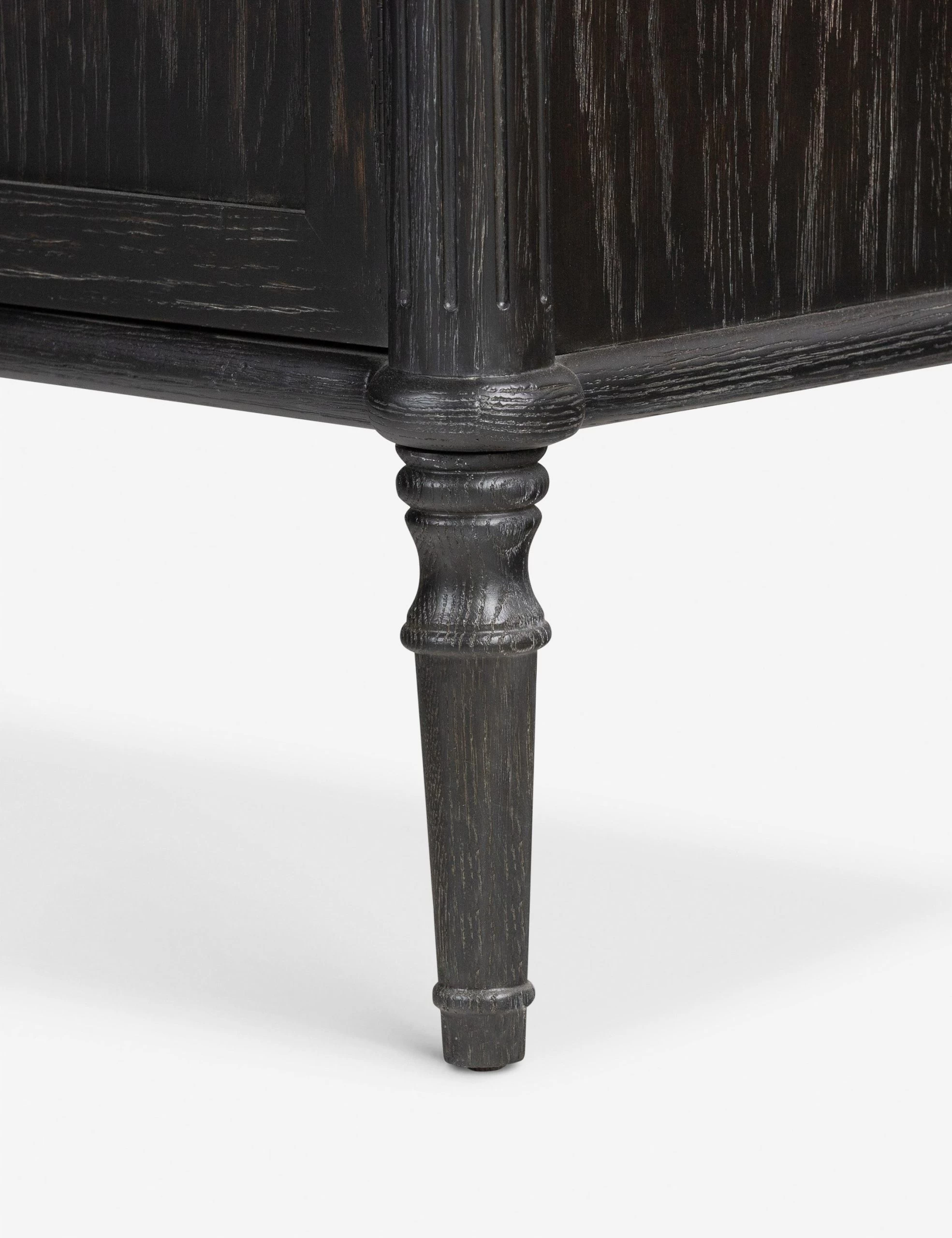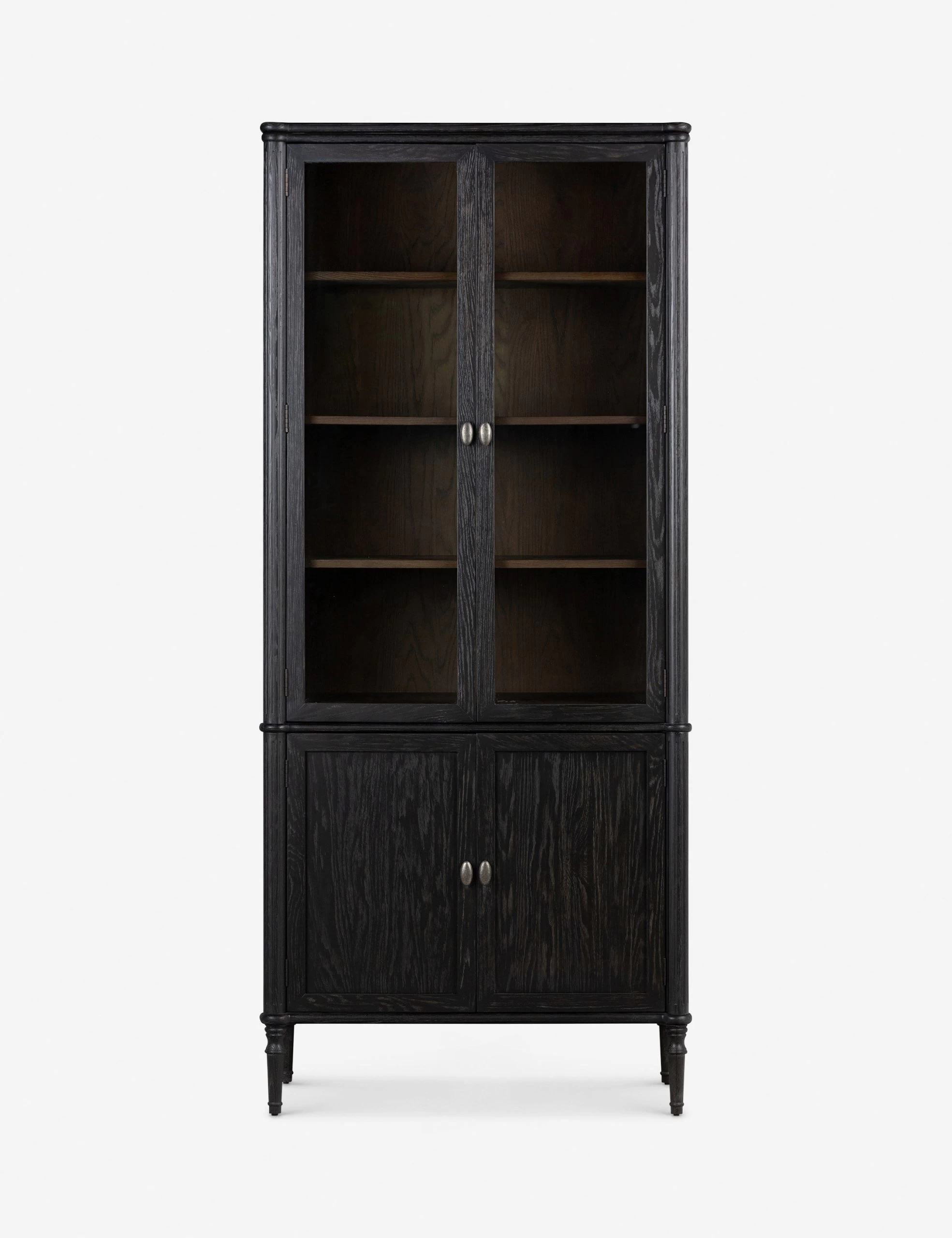 Traditional style meets modern appeal in this vintage European-inspired curio cabinet. Turned legs and intricate detailing bring a timeless air to the oak-clad frame, with rounded pulls in antique brass to complete the look. With glass paneled doors above and an additional cabinet space below, this storage piece brings an elevated look to functional design.