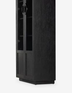 With its sleek oak frame finished in black, this curio cabinet is the perfect showcase for a rich and moody aesthetic. The cabinet’s glass-paneled doors feature rounded iron handles with a hammered detailing for added textural intrigue. Fill with your favorite decor, dishes, or books for a stunning display.