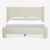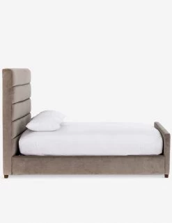 Horizontal channeling adds contemporary style to this upholstered bedframe. Give it your own personal touch by mixing in high-texture throws, a chic duvet and pop-color shams.
