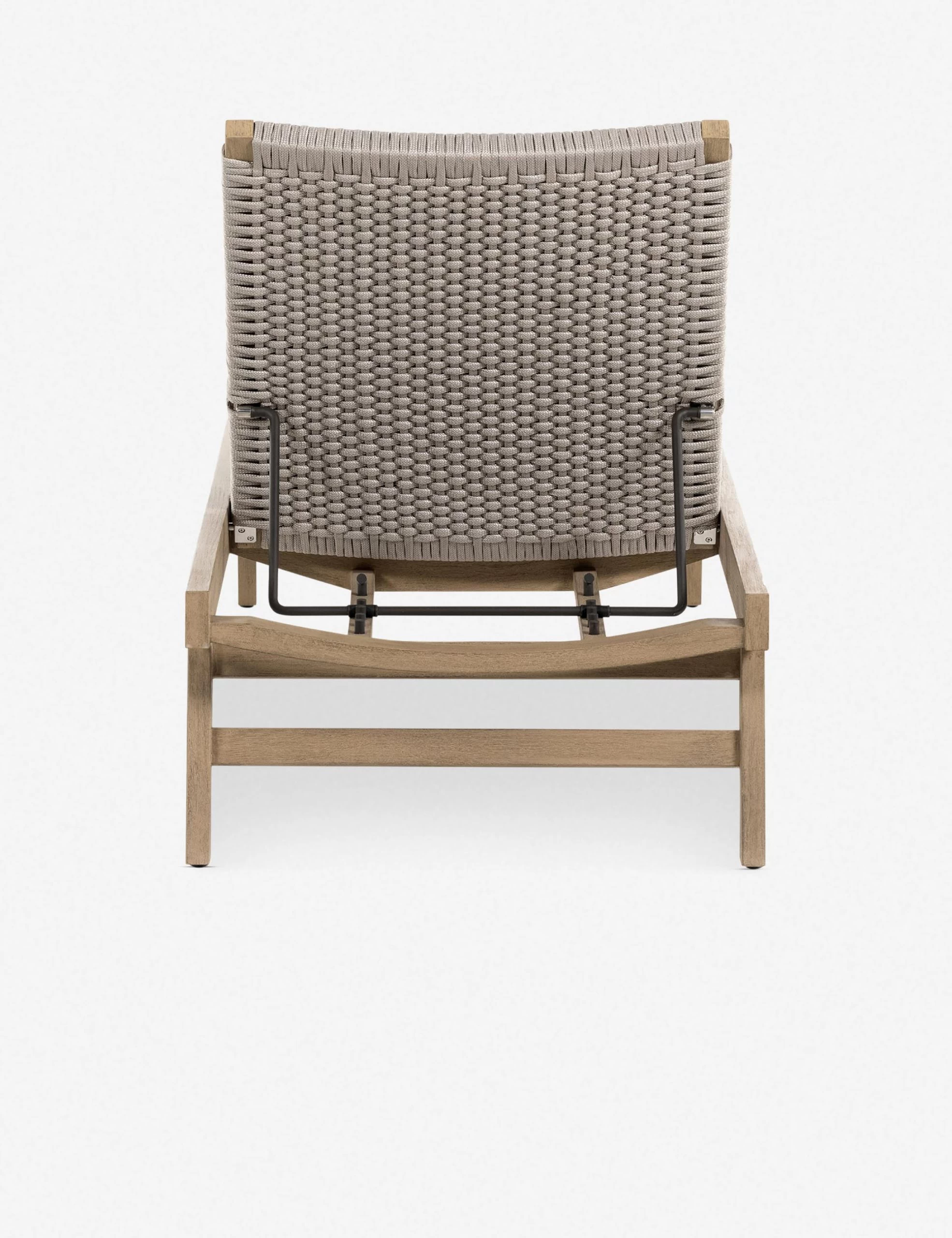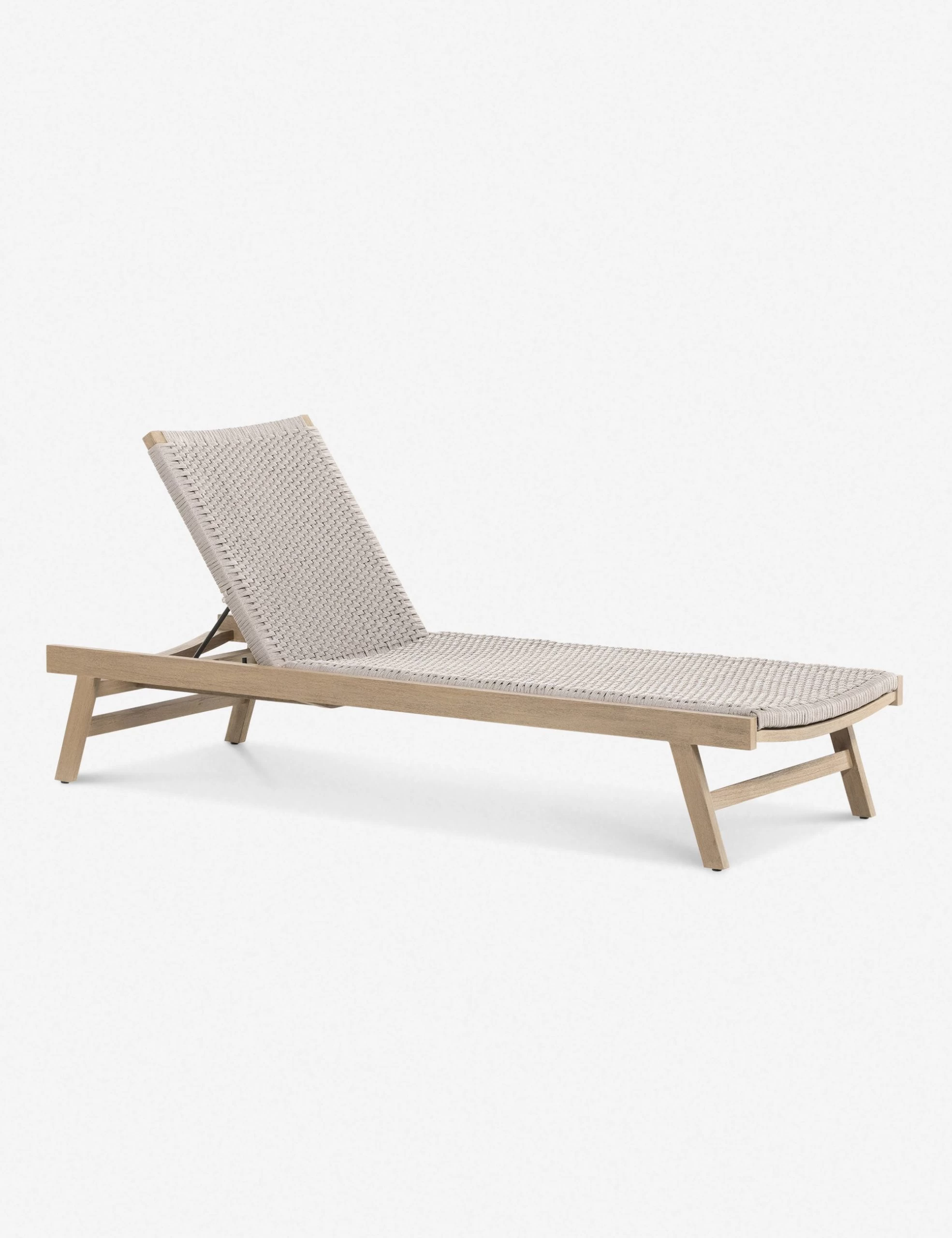 A handwoven rope seat offers easy comfort with textural appeal in this chaise lounge. The teak frame features clean lines and an adjustable back for a transitional style. With its neutral tones and understated design, this chaise can fold into any aesthetic.