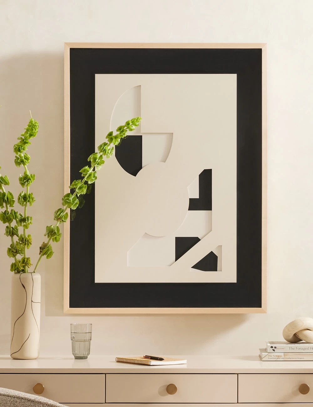 Cutout layers strike geometric intrigue within negative space for this alluring wall art series. The stacked shapes offer depth and dimension with a modern edge to elevate your wall decor.