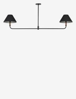 Top-grain leather, solid walnut, and metal accents bring beautiful mixed materiality to bear in this mid-century-inspired lighting collection. The Doherty linear pendant features a double pendant design to provide an ample pool of light—perfect for a kitchen island or dry bar.