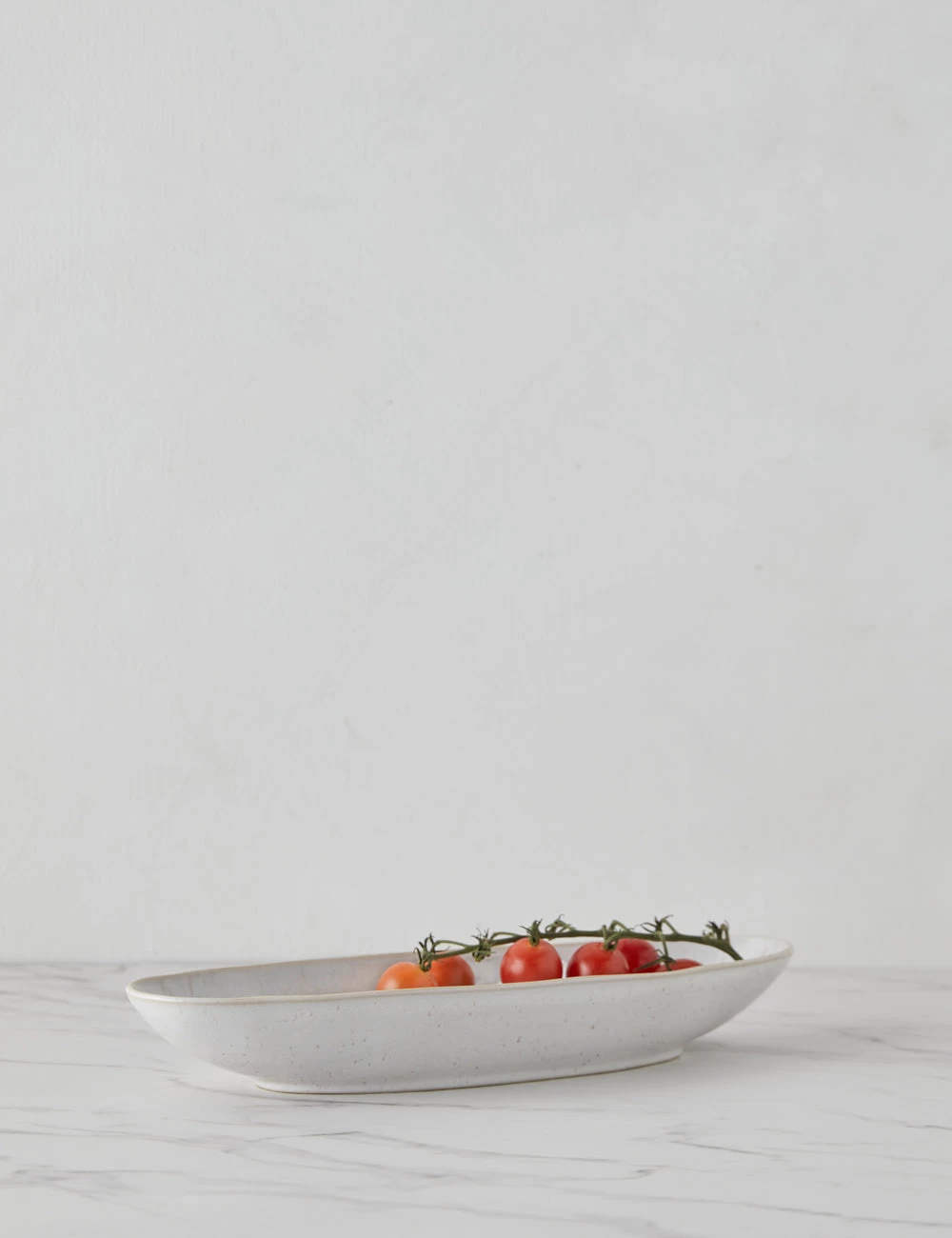 With a dynamic glaze coursing with speckles and striations, the Eivissa dinnerware collection from Casafina feels as if it has been poured into its blissfully organic forms. Fashioned from stoneware, the delicate lines of this serving platter belie a durability that strikes the perfect balance between stunning and practical for everything from shared bites to final courses. Finish your dinnerware set with this essential accent.