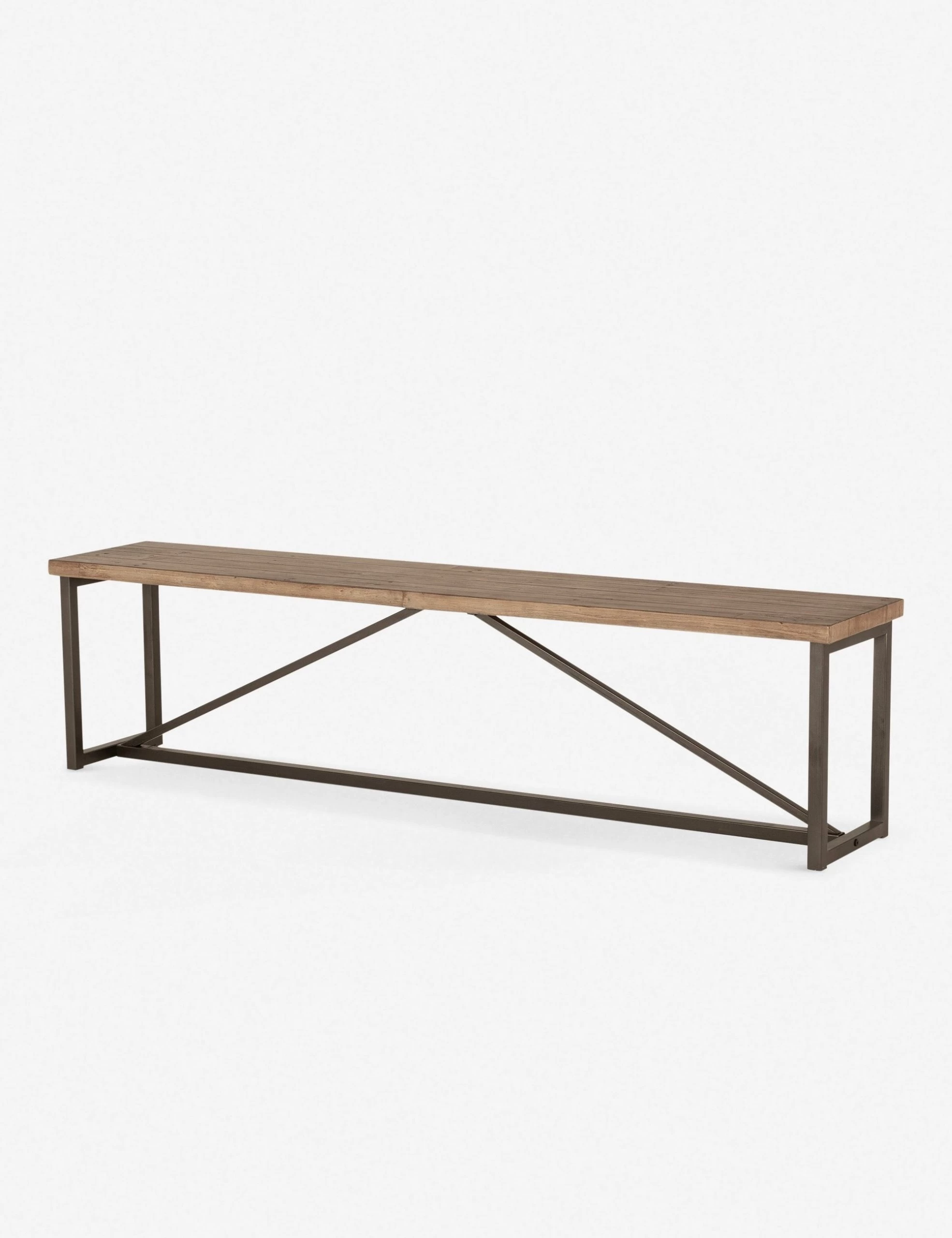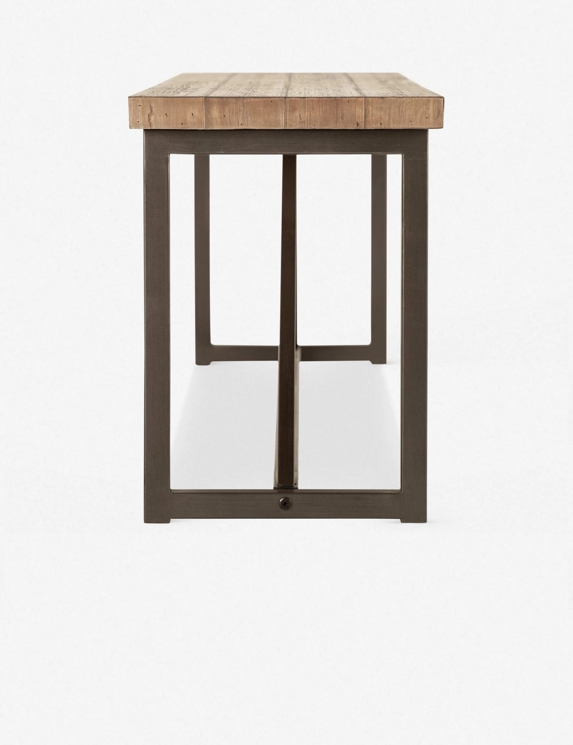 Reclaimed pine with a textured grain gives the Elassi collection a dose of farmhouse style. The dark metal framework and bold geometric angles create an eye-catching blend of modern and rustic design.