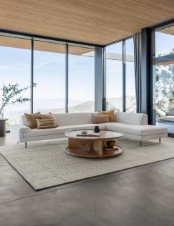 Soft lines and a natural grain complement the round profile of this modern coffee table. The raised edge provides a gentle accent that keeps spills and objects on the tabletop, while the open design offers room for storage and decor below. Style this wood coffee table for an inviting centerpiece to gather around in your family room or lounge.
