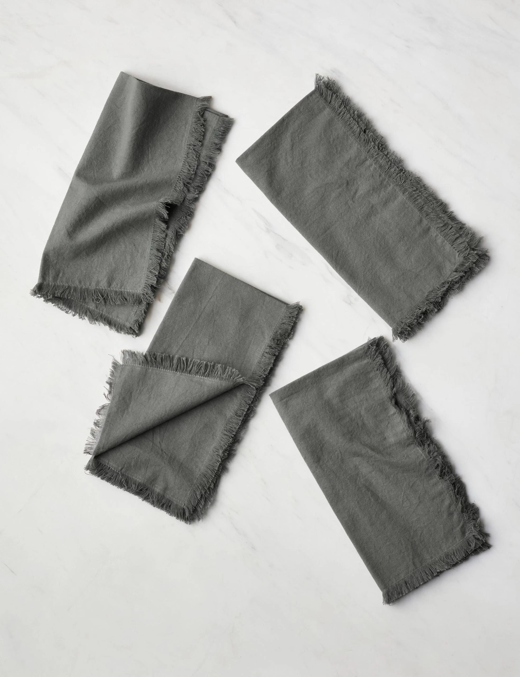 Whether you are setting the table or reaching for a single cloth, this set of dinner napkins offers the grounded, soft touch you need. The cotton is fringed and hand-dyed in a range of solid colors for a chic look that can dress up a gathered table or fold into your casual snacks and meals. Wash and reuse this eco-friendly kitchen essential for endless practical appeal.