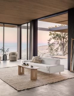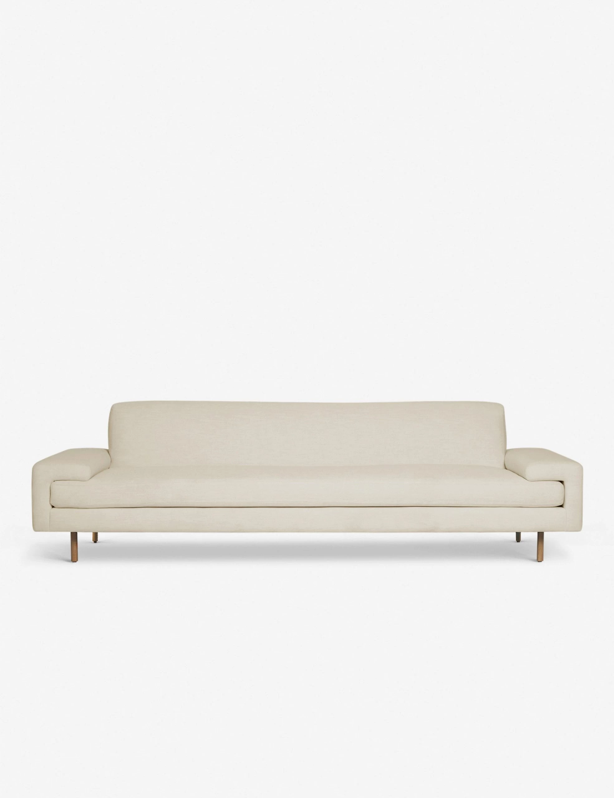 A simply stunning transitional sofa you can tailor to your space. Set on wooden dowel legs, this couch offers a plush, airy silhouette to elevate your look. The clean-lined frame features a soft cushion seat fully upholstered in linen for a soft, natural fiber touch.