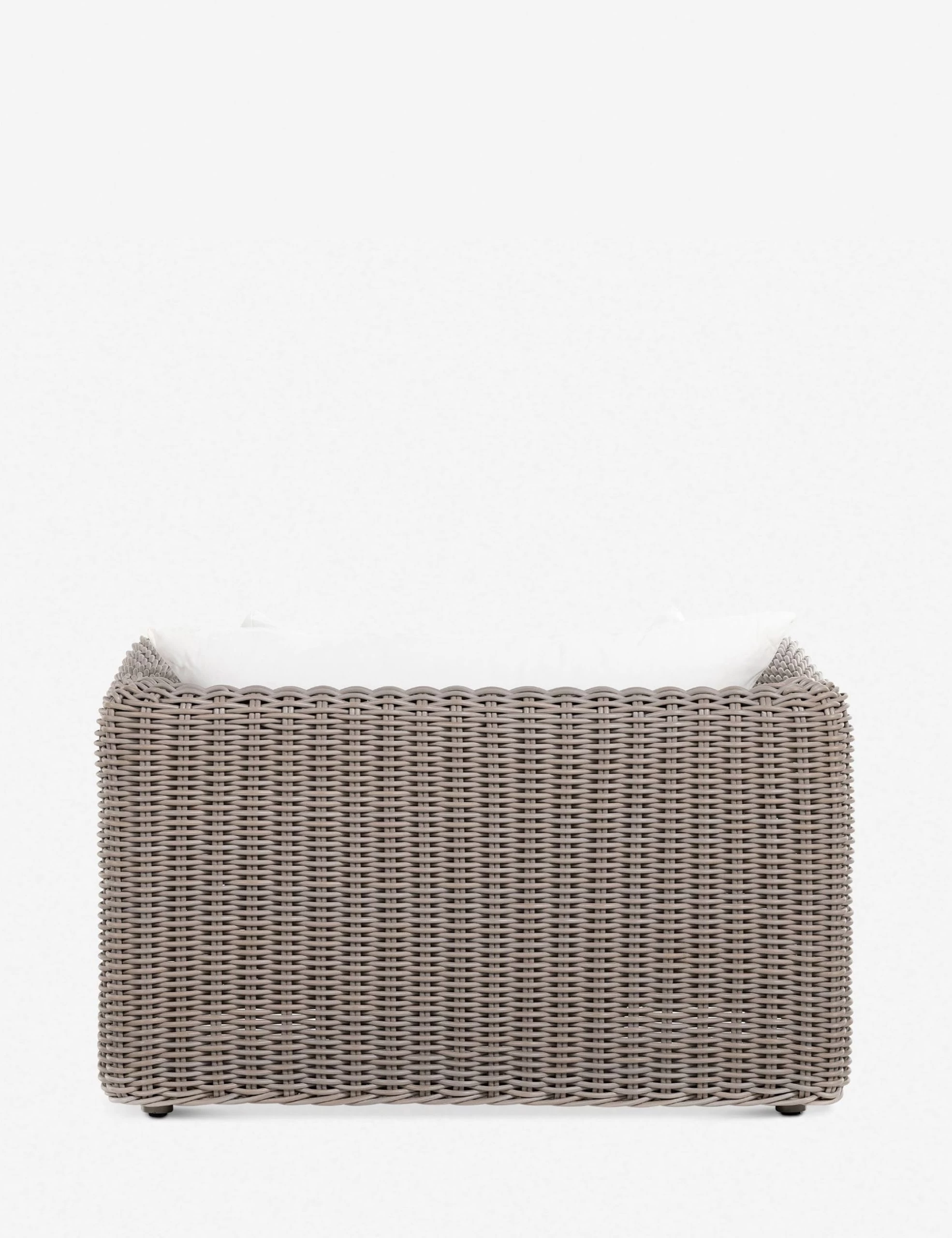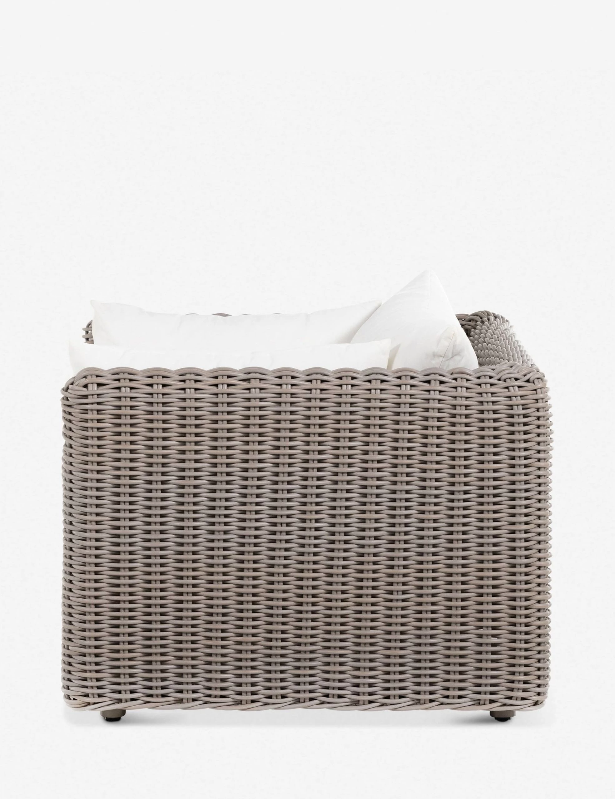 Pairing a plush, airy style with sculptural lines, this dynamic wicker accent chair offers a sculptural element for a distinctive lounge. The all-weather wicker frame forms an angular silhouette fit with performance upholstered cushions for a versatile chair you can style from the sunroom to the patio.