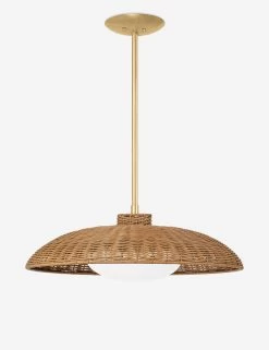 Fiora pairs a rattan shade with a gold leaf-finished stem for a vintage-inspired pendant design. Style this wicker hanging light fixture alone or in multiples for a woven feature overhead in a dining room, kitchen, or living space.
