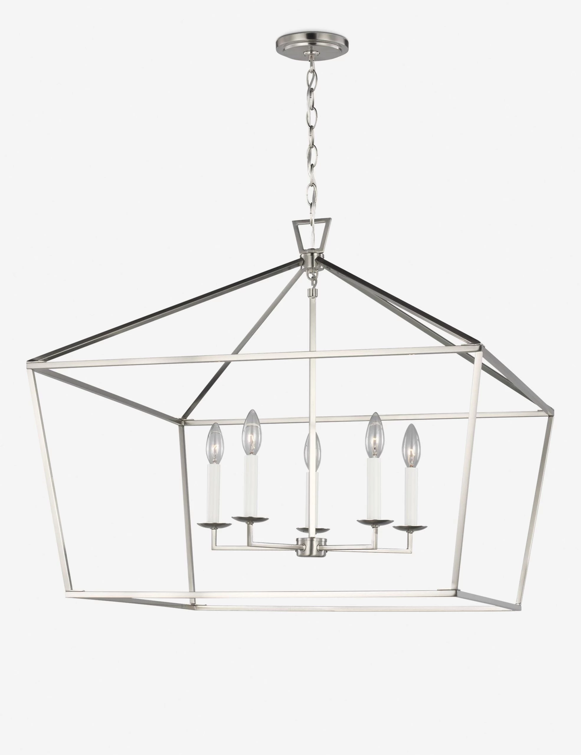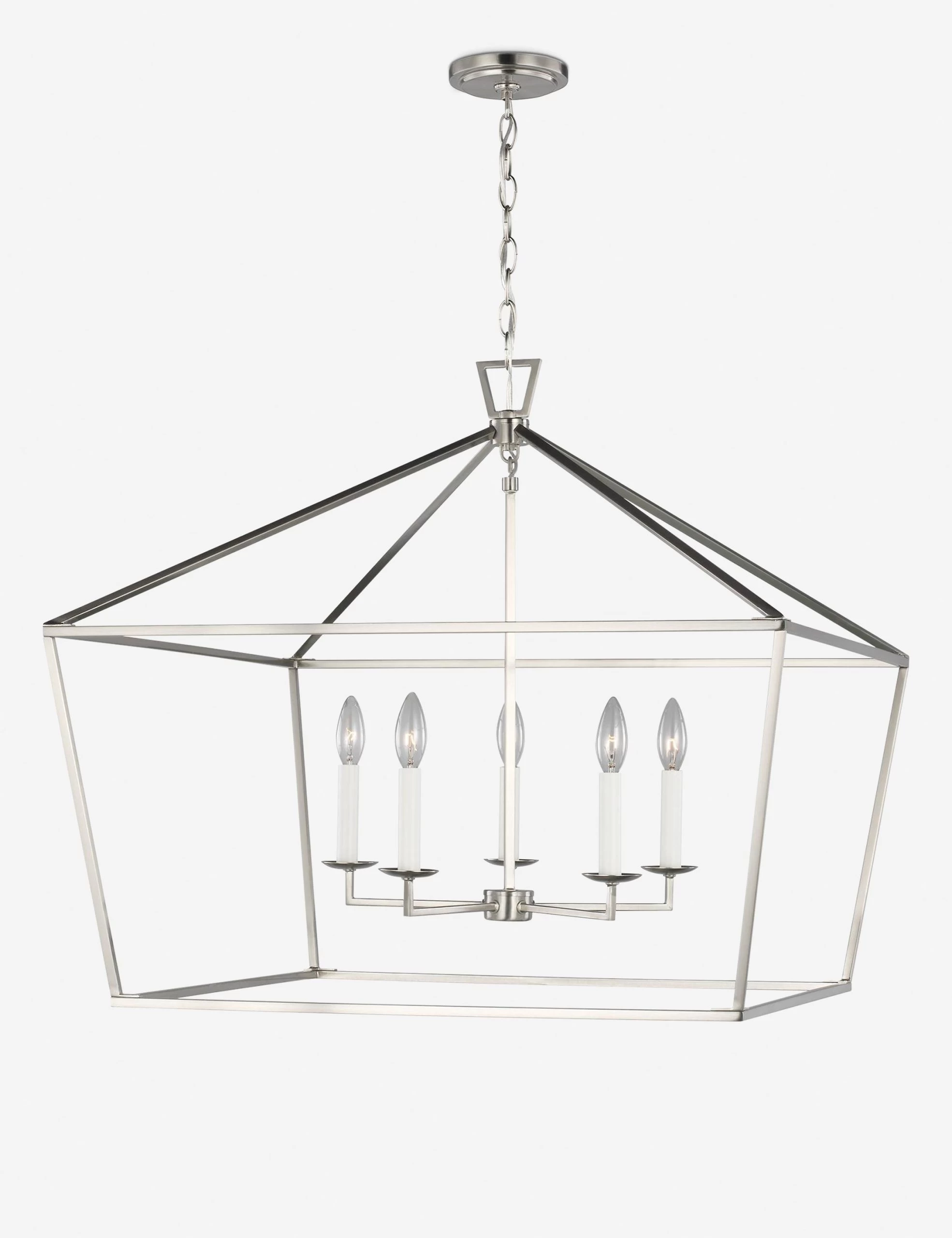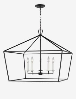 Bring statement lighting to transitional home design with this open frame pendant light. The airy, geometric silhouette offers a modern update on the classic lantern pendant, while candle-style lights inspire a rustic charm. This large-scale hanging light is the perfect feature over a dining room or coffee table.