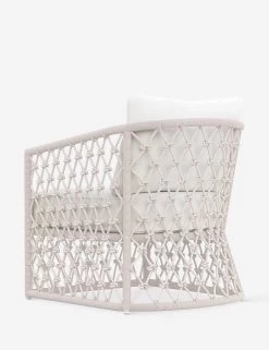 The Gibbs indoor/outdoor chair balances practical comfort with breezy sophistication. From the light but sturdy aluminum underneath to the all-weather rope and removable, performance fabric cushions, every element is designed to bring effortless elegance to indoor-outdoor living. This club chair features soft curves meeting clean lines in an airy, rope-wrapped frame with hand-knotted detailing for a distinctive touch.