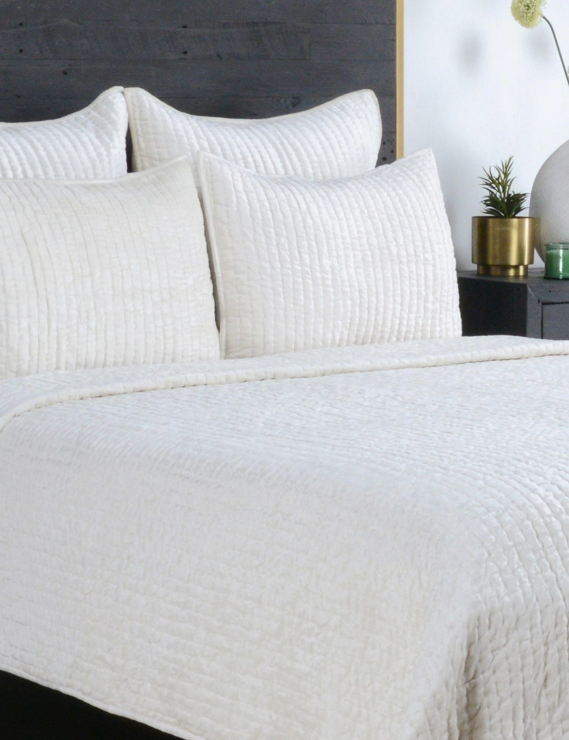Get ready to indulge yourself a bit with the velvety softness of this hand-stitched quilt. Featuing linear quilting and a lustrous velvet finish, this bedding collection delivers a touch of glam and lets you sink into your bed. In muted earth tones, it seamlessly pairs with the rest of your linens.
