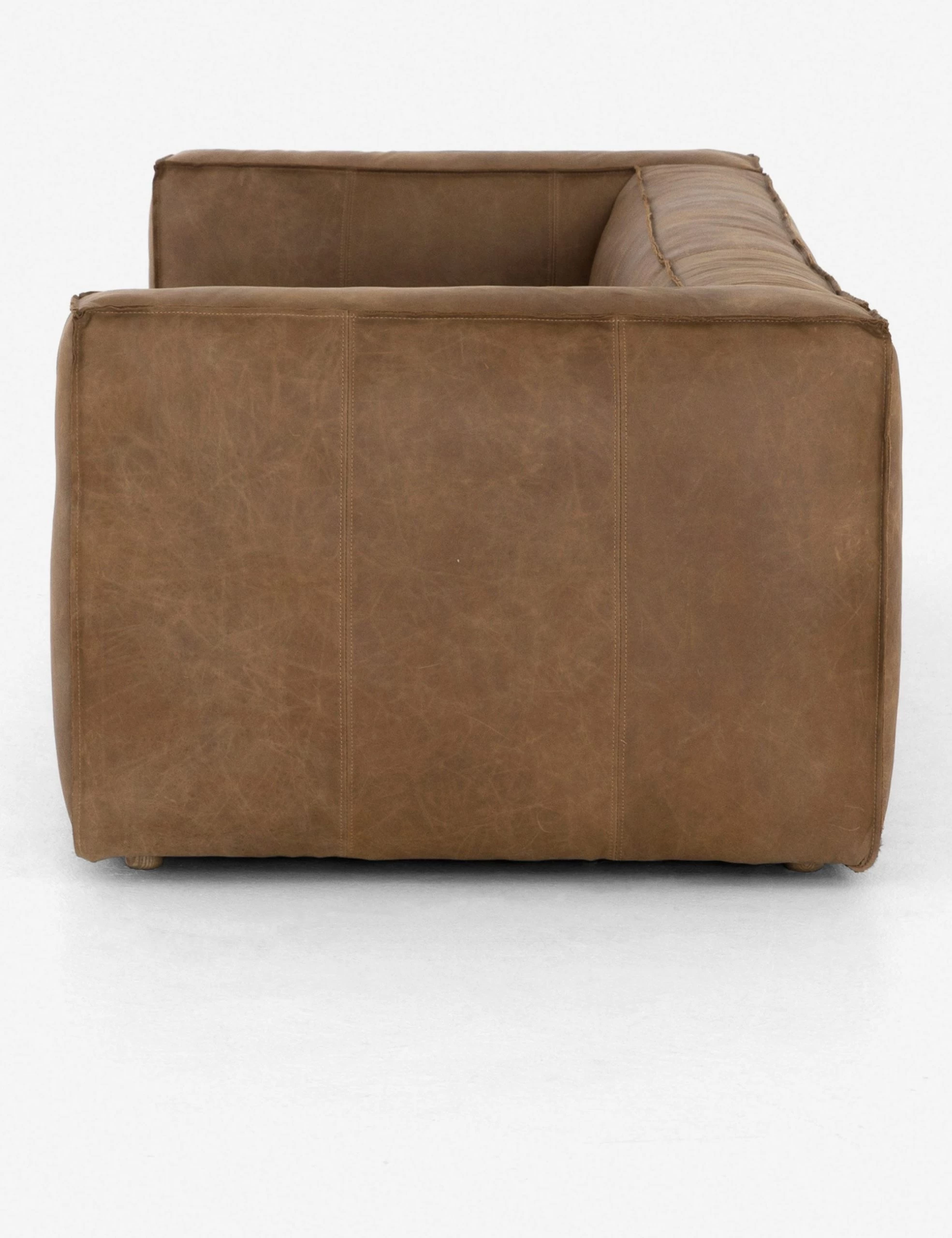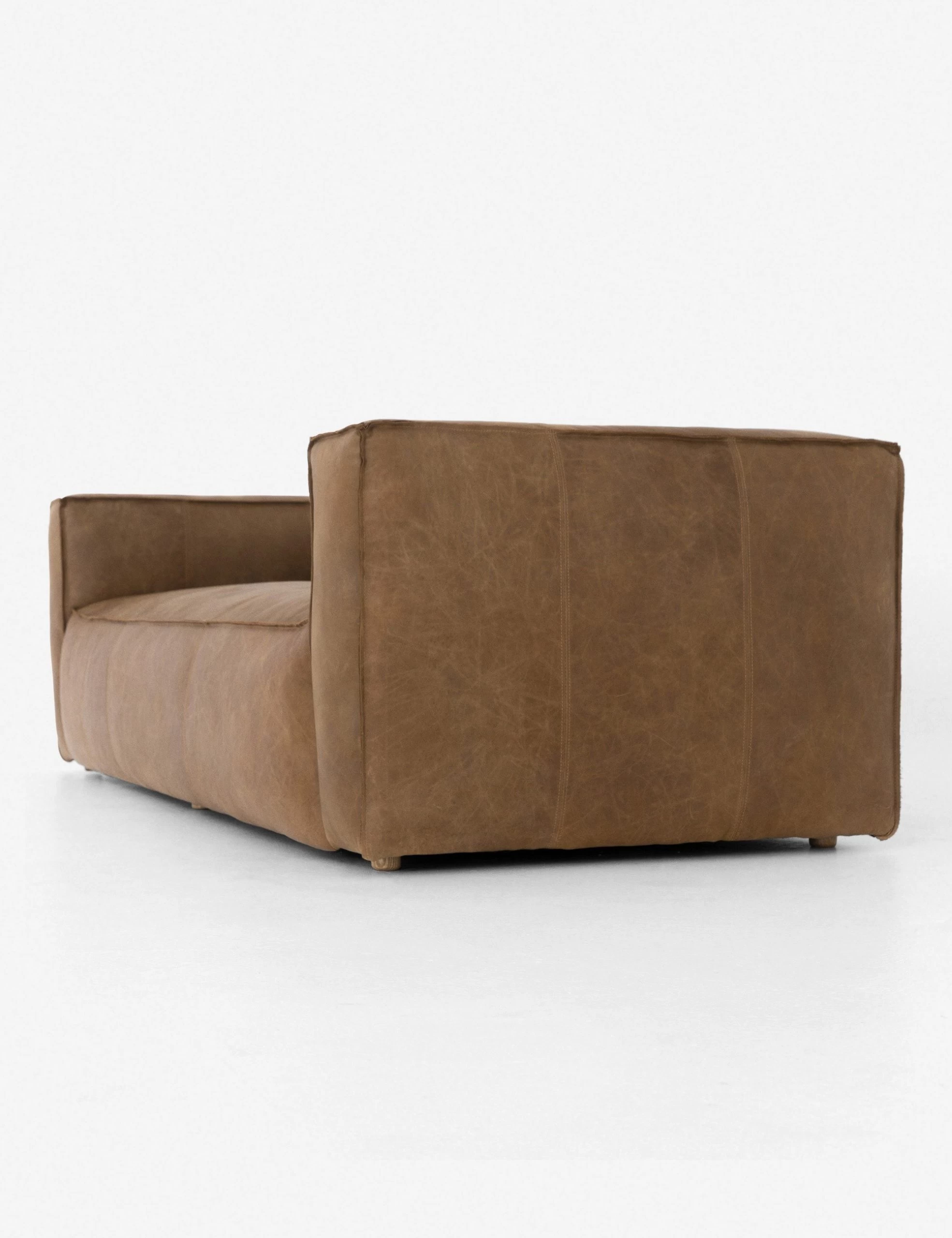 With its low-slung, tight back design and reverse-stitched detailing, our Graham Leather Sofa marries understated style with premium leather upholstery. Better still, its top-grain leather, in a rich, brown finish, will develop a beautiful patina over time, for a luxe, lived-in look.