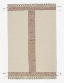 Hand-loomed of texture-rich wool, this area rug offers geometric minimalism with its neutral-hued linear motif. A plush pile, diamond lattice border, and braided tassels combine to make this rug a statement piece.