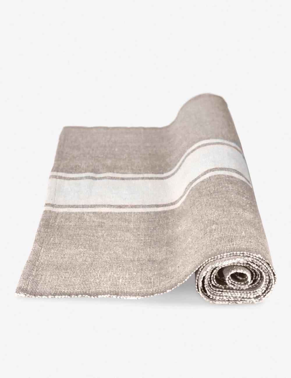 Vermont-based studio Farmhouse Pottery creates handcrafted accents and table essentials with rustic charm. Inspire a inviting tablescape with this handmade blended linen runner. The striped design and soft color offer a versatile table runner that brings effortless elegance to any gathered meal.