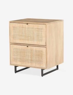 Combining natural and industrial materials, this filing cabinet is a must for mid-century office spaces. We love the woven cane inset drawers and minimalistic metal pulls.