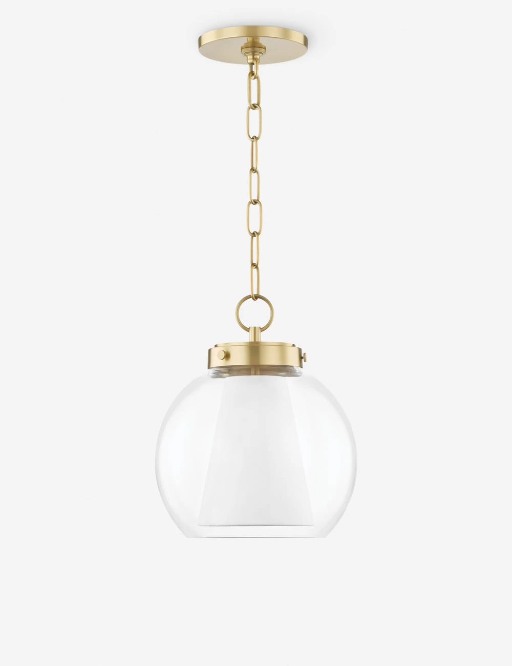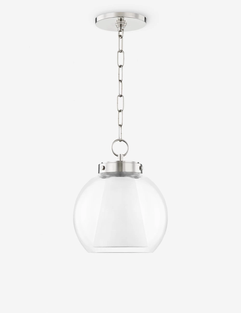 Polish your lighting design with a refined touch of this double-shaded hanging light. The Harrell pendant features an open glass orb around a tapered white shade neatly suspended from a chain. Endlessly versatile and instantly elevating, this design is ready-made stunner.