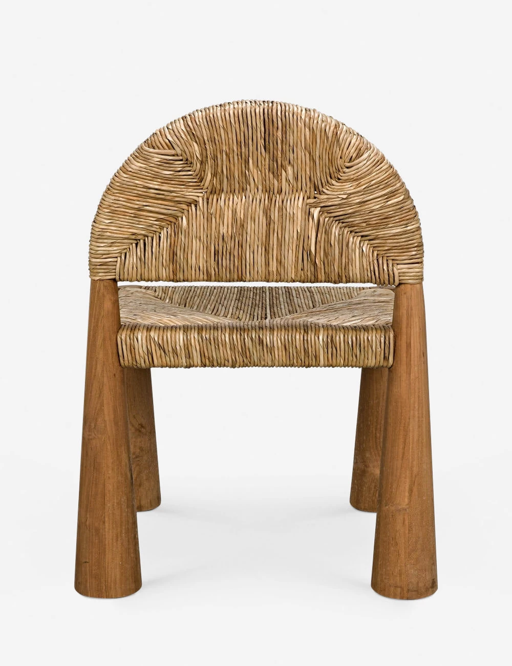 Exaggerated and sculptural, this chair is an instant statement piece. The half-moon back and square seat are crafted from woven sea grass and paired with conical teak legs. Style several around your dining table for a dramatic look or use as an accent chair in a vignette.