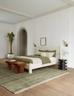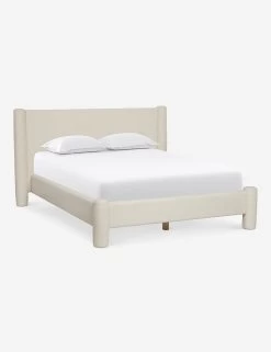 Soft, rounded edges and a streamlined design make this bed into a statement-making retreat. The oversized headboard and fully-upholstered bed frame give it an evolved look. This piece is from our exclusive Sarah Sherman Samuel collaboration and features all the trademarks of her warm, edited style.