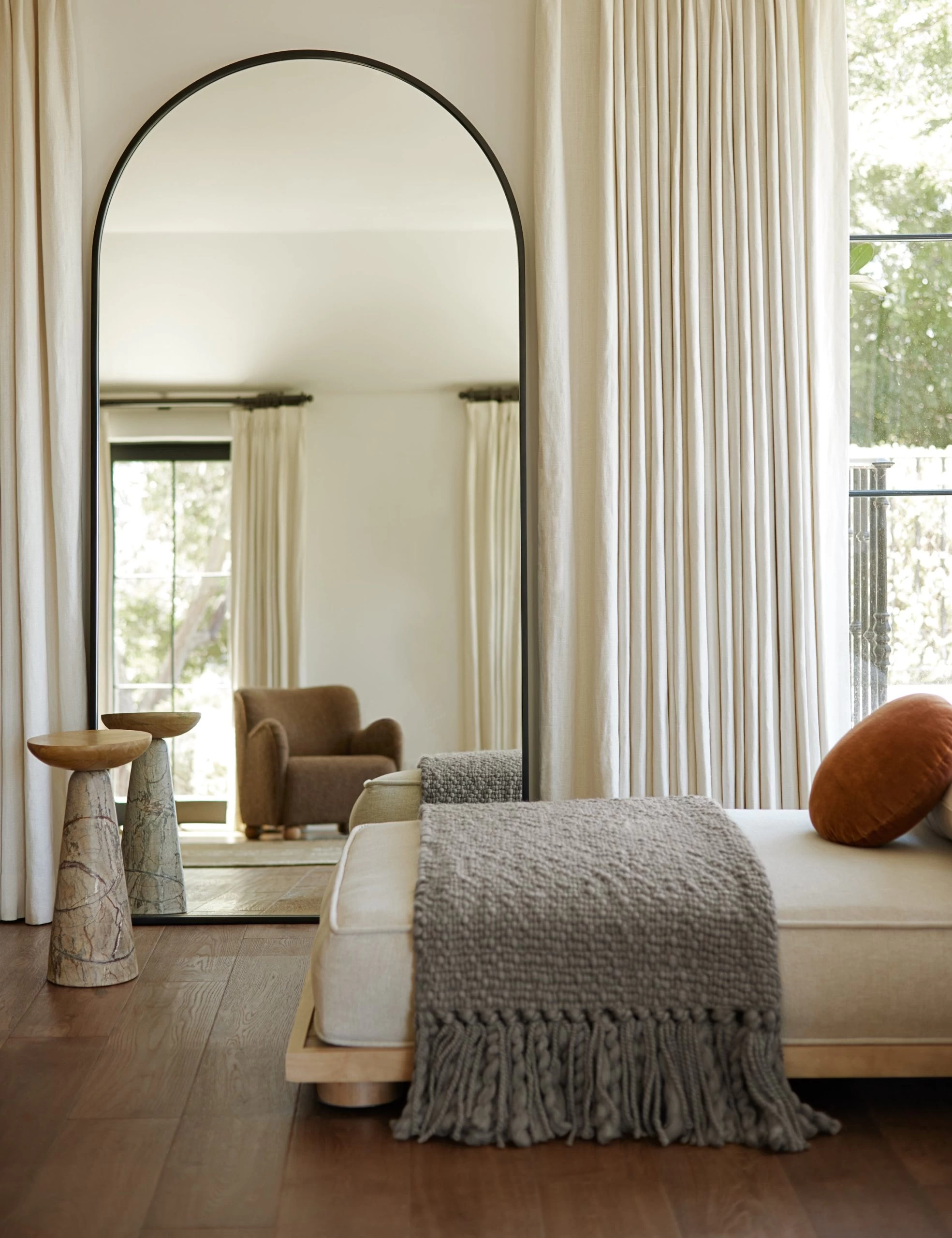 Sometimes the simplest touches have the most significant impact in the room. Our Idris mirror offers a pared-down look with an inset design in a clean-lined metal frame. The arched profile of this full length mirror will bring a practical touch with on-trend appeal to any space.