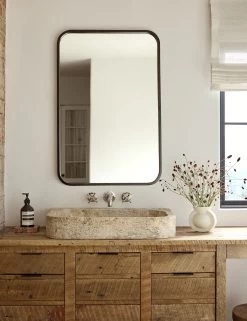 Sometimes the simplest touches have the most significant impact in the room. Our Idris mirror offers a pared-down look with an inset design in a clean-lined metal frame. The gently rounded corners let you fold this versatile wall mirror into your decor for soft appeal with a modern edge.