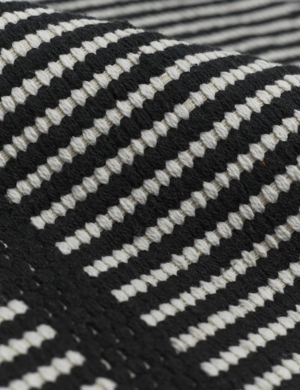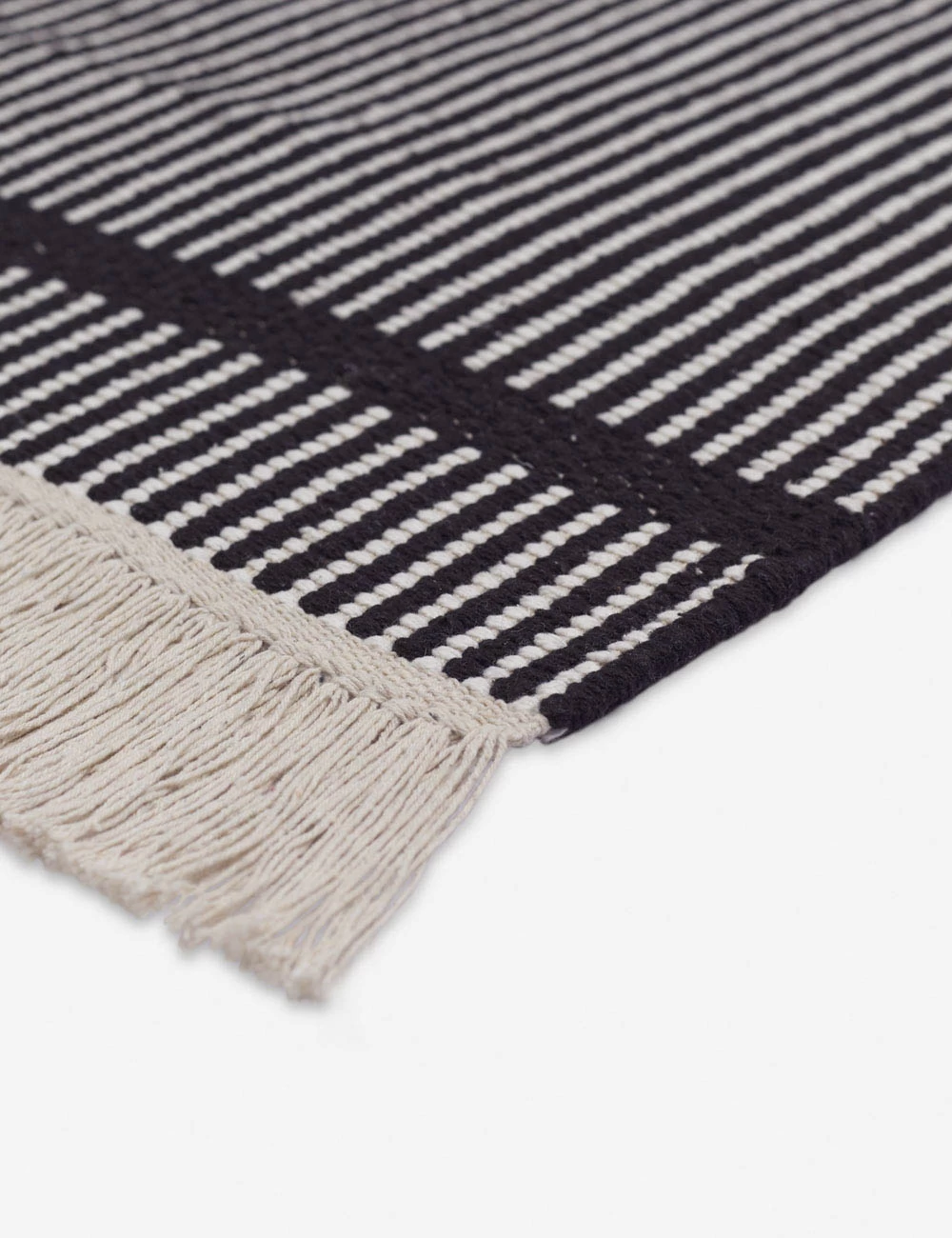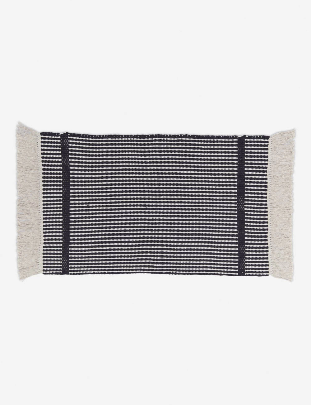 Striking a modern tone, our Ines Mat is handwoven from 100% cotton for a natural touch that is quick-drying and soft on the feet. The thick fringe and high contrast design layer vibrant texture into an entryway, bathroom, or kitchen.