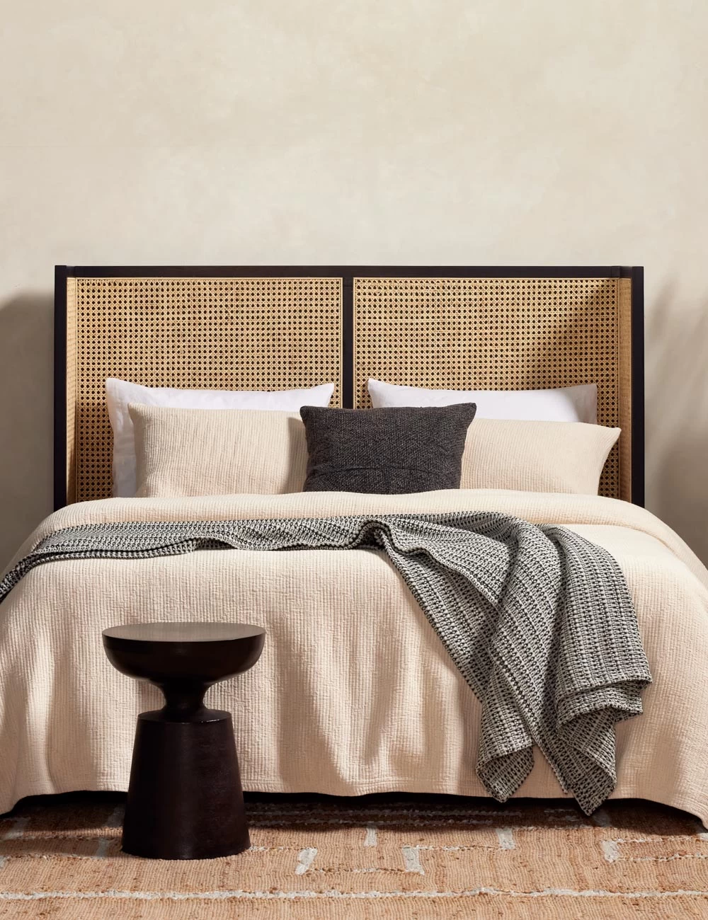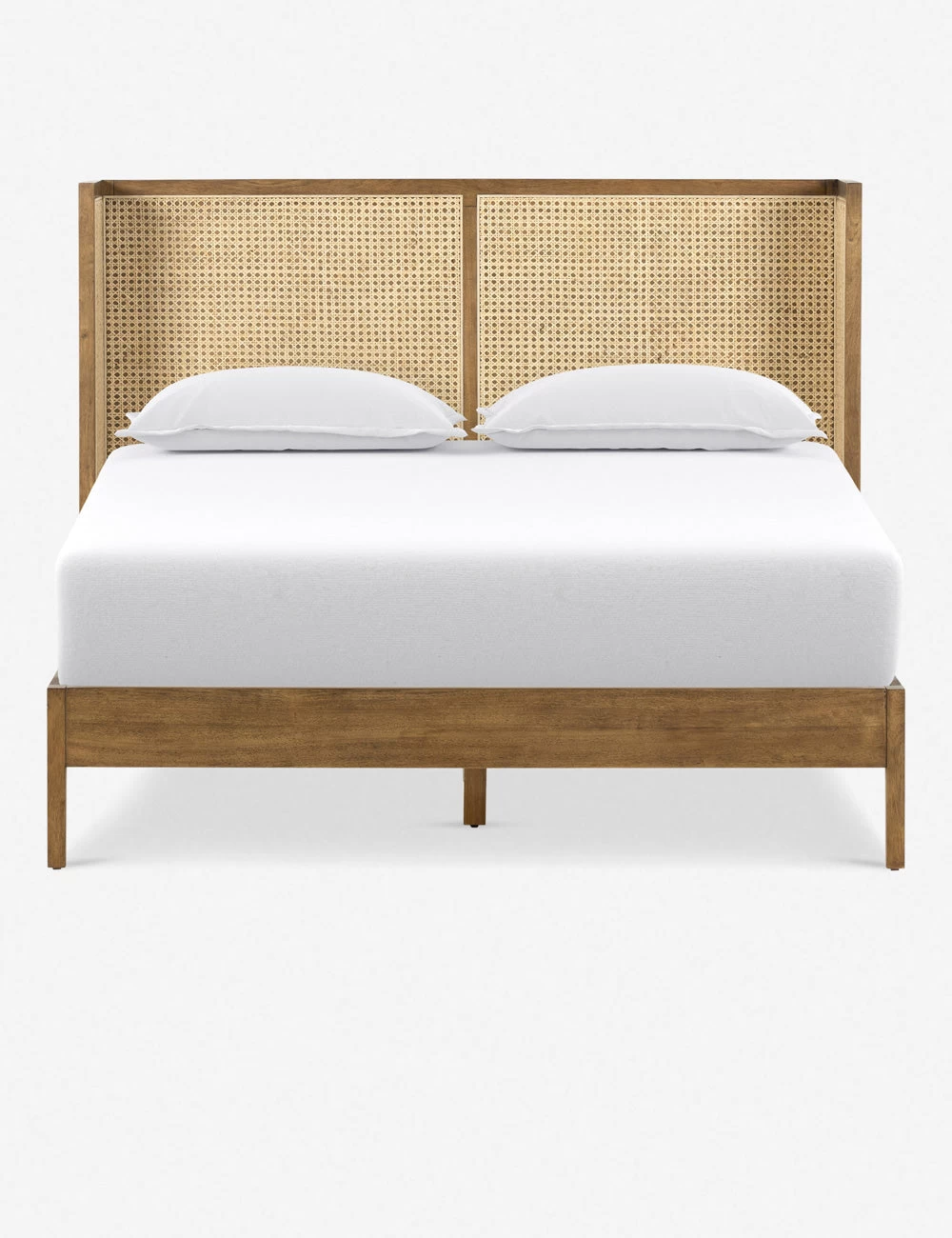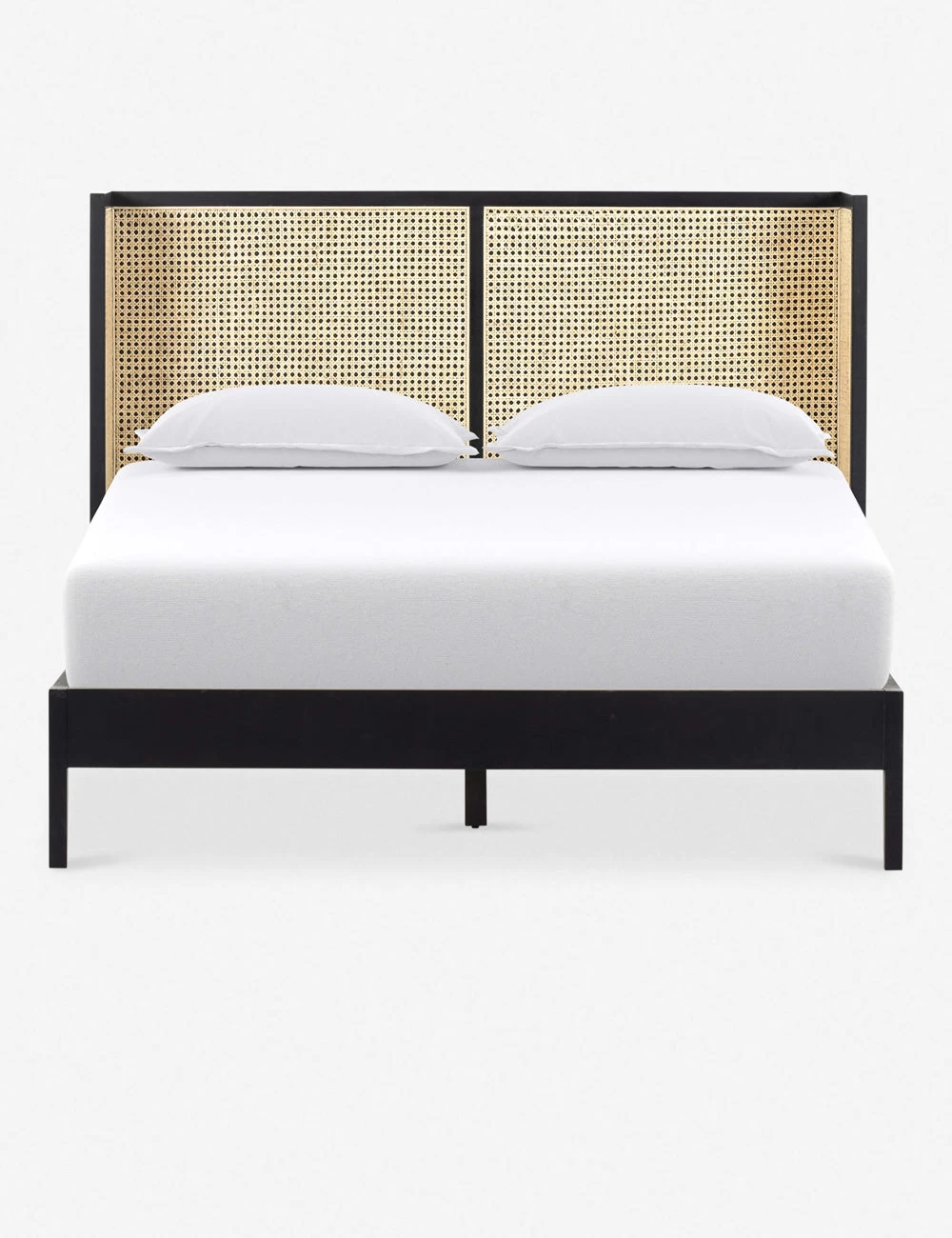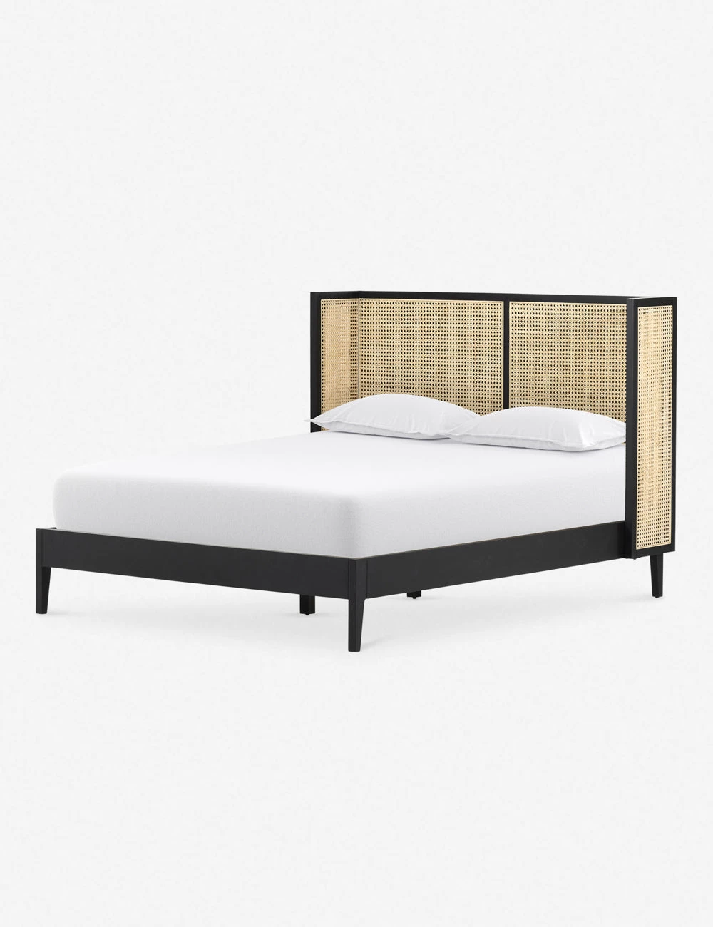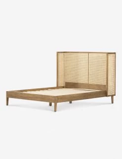 The Jeni Bed is lends tons of transitional appeal to your space. The clean-lined wingback design inspires an airy, timeless bedroom feel with its beautiful wood bed frame and cane paneled headboard.