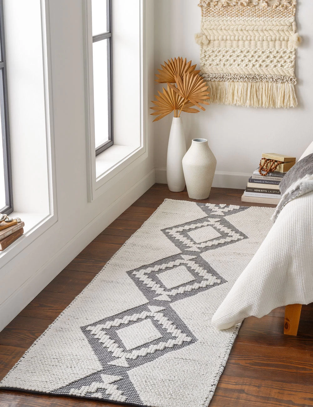 Pairing an eye-catching, large-scale design with a soft textural weave, this dynamic floor rug is ready for versatile styling appeal. Each rug is handmade from recycled materials for a durable, easy-care foundation you can style indoors in a high-traffic space or outdoors on a patio or porch.