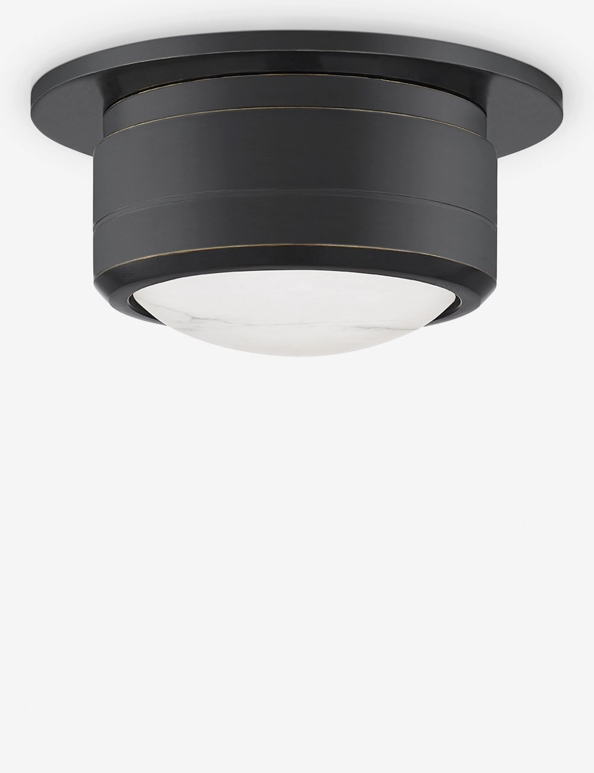 A clean, versatile design makes this light ideal as a flush-mounted ceiling lamp or low-profile wall sconce. Its white Spanish alabaster shade provides a luxe natural touch that diffuses a delicate, smooth light while an antique brass finish offers antiqued refinement.