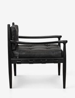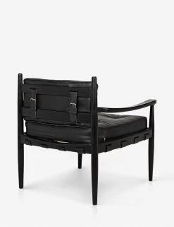 Sleek black leather adorned by a black finished sungkai wood base makes for a refined accent piece that is sure to energize any space it’s in. Parachute straps made of leather and metal buckles give pops of detail and intrigue.