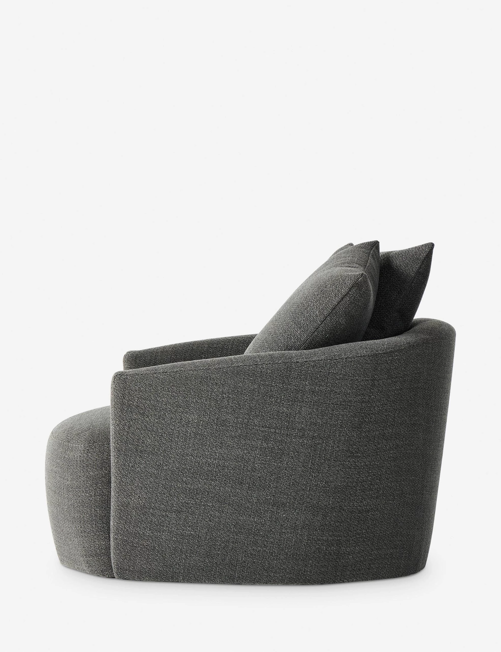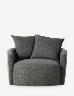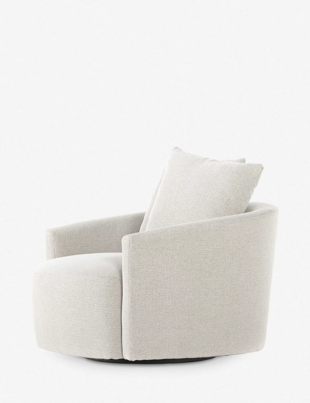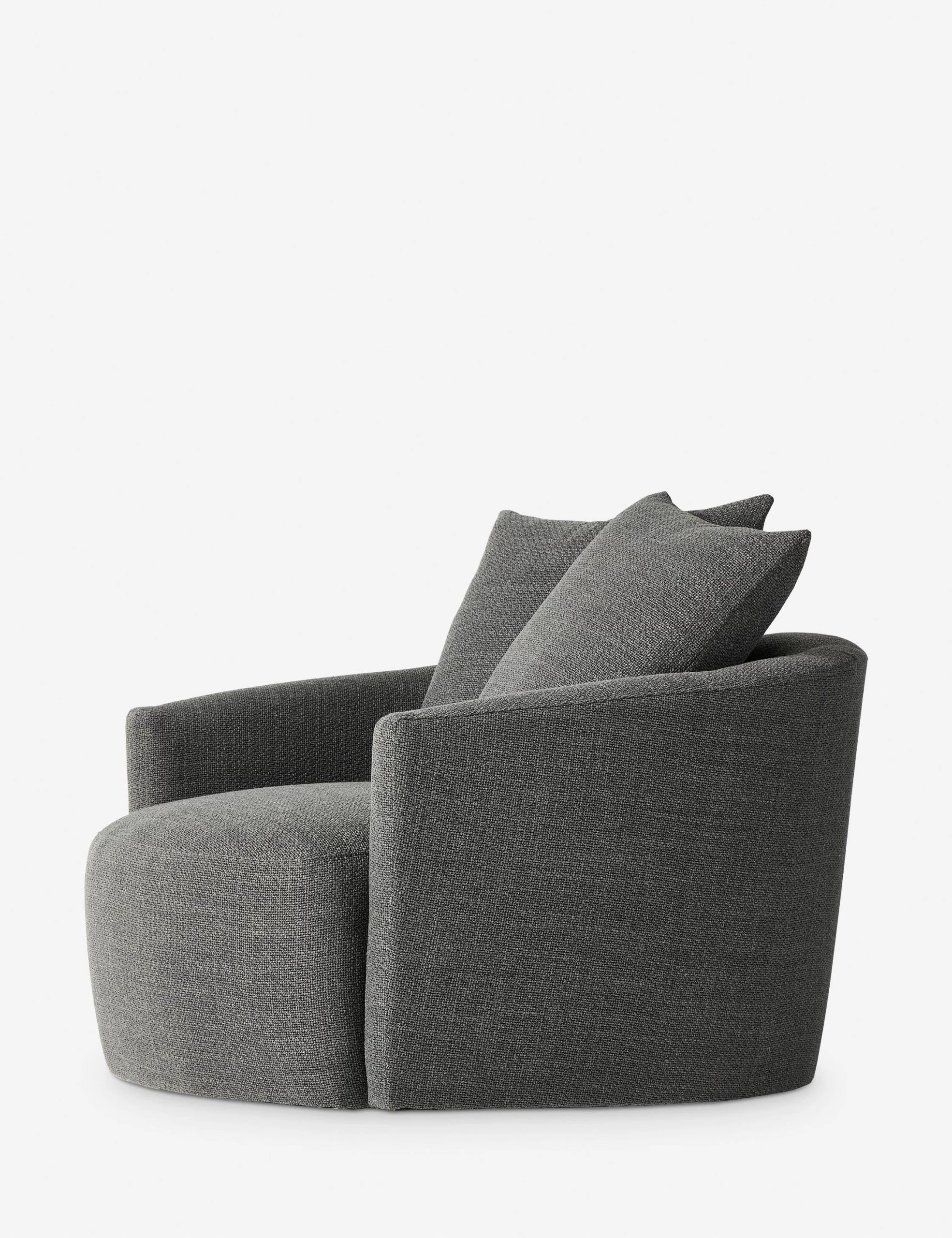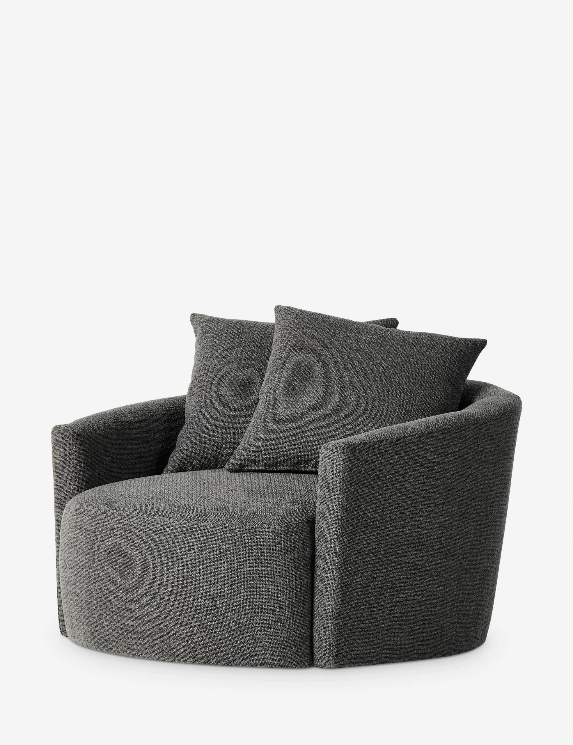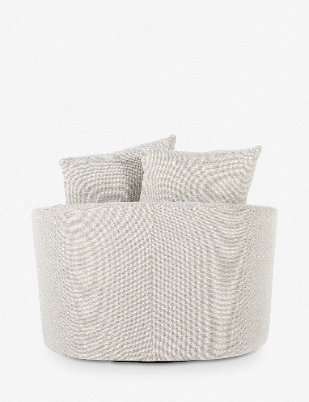 Curl up in easy comfort with the Kaila Swivel Chair. Its rounded design and pillow cushions are ready for the ultimate lounge feel, whether styled as a living room occasional chair or as part of a cozy bedroom nook. A swivel base finishes this design for dynamic appeal.