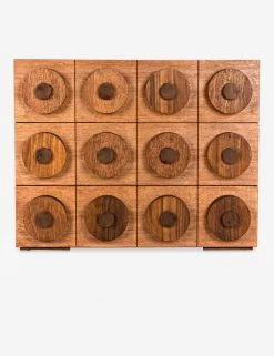 Cylindrical wood drawer pulls clad this dresser with a playful facade for an effortlessly modern feel. We love the compact length and spacious drawers for an eye-catching dresser with small-space potential.