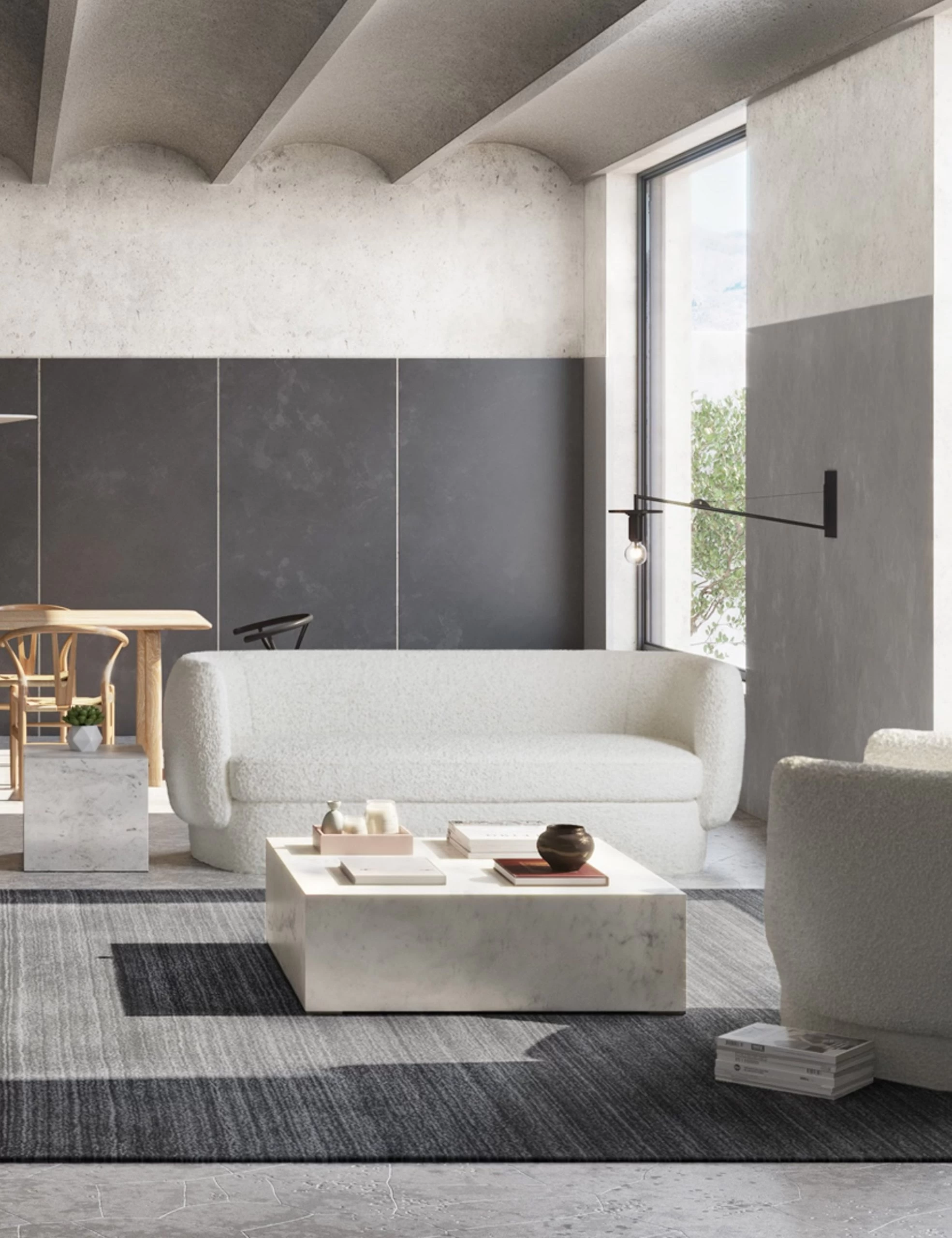 Cut from Kailashpri white marble into clean, polished lines, each coffee table bears a unique pattern of natural striations. Luxe materials and design lend this square coffee table an elevating presence in the living room. We love styling it with an uber-soft accent chair or a naturally textured sofa to create stunning contrast.