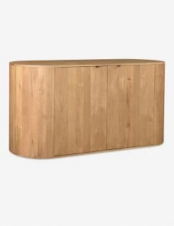 Crafted from solid oak wood, the Kono Sideboard is a beautifully versatile piece for your dining room or living space. Featuring a curved silhouette and sliding doors with magnetic closure, this sideboard cabinet combines the best of form and function.
